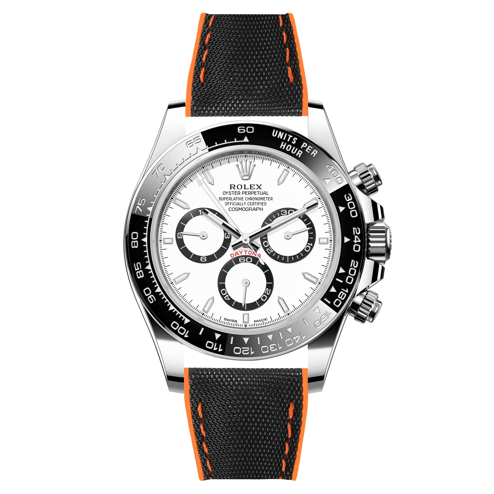 Elevate your Rolex Day-Date with the Luca Canvas Nylon Performance Strap, a perfect fusion of rugged durability and refined style. Designed for the modern adventurer, this strap seamlessly blends the timeless appeal of canvas nylon with the resilient performance of an FKM rubber core, creating a versatile and comfortable accessory for your cherished timepiece.