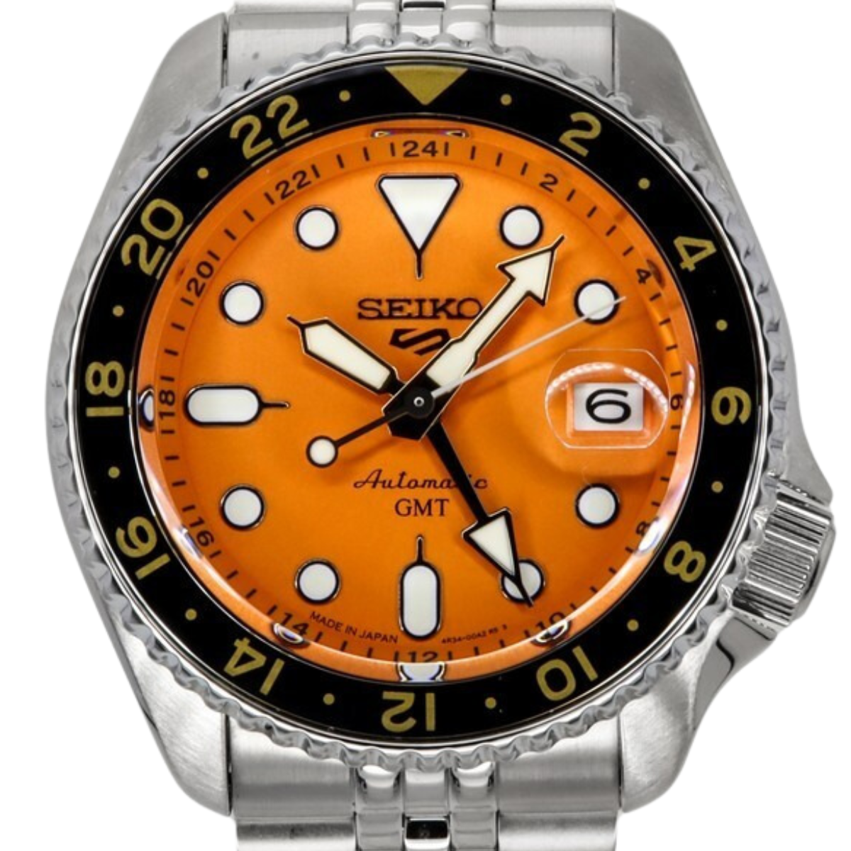 Seiko 5 Sports Style GMT SSK005J1 SSK005 SSK005J Orange Dial Automatic Men's Watch
