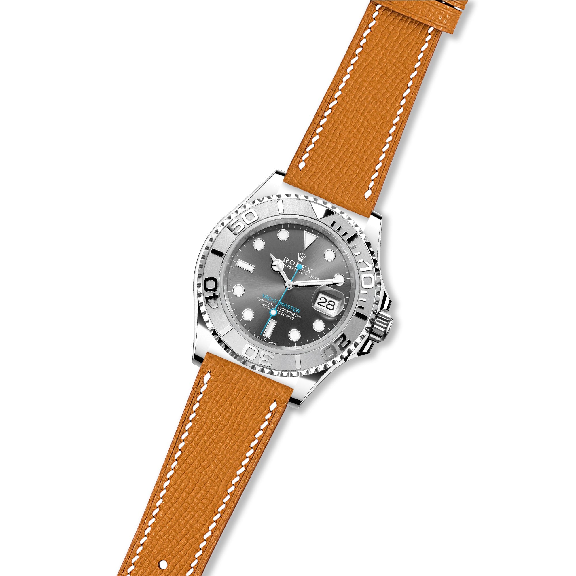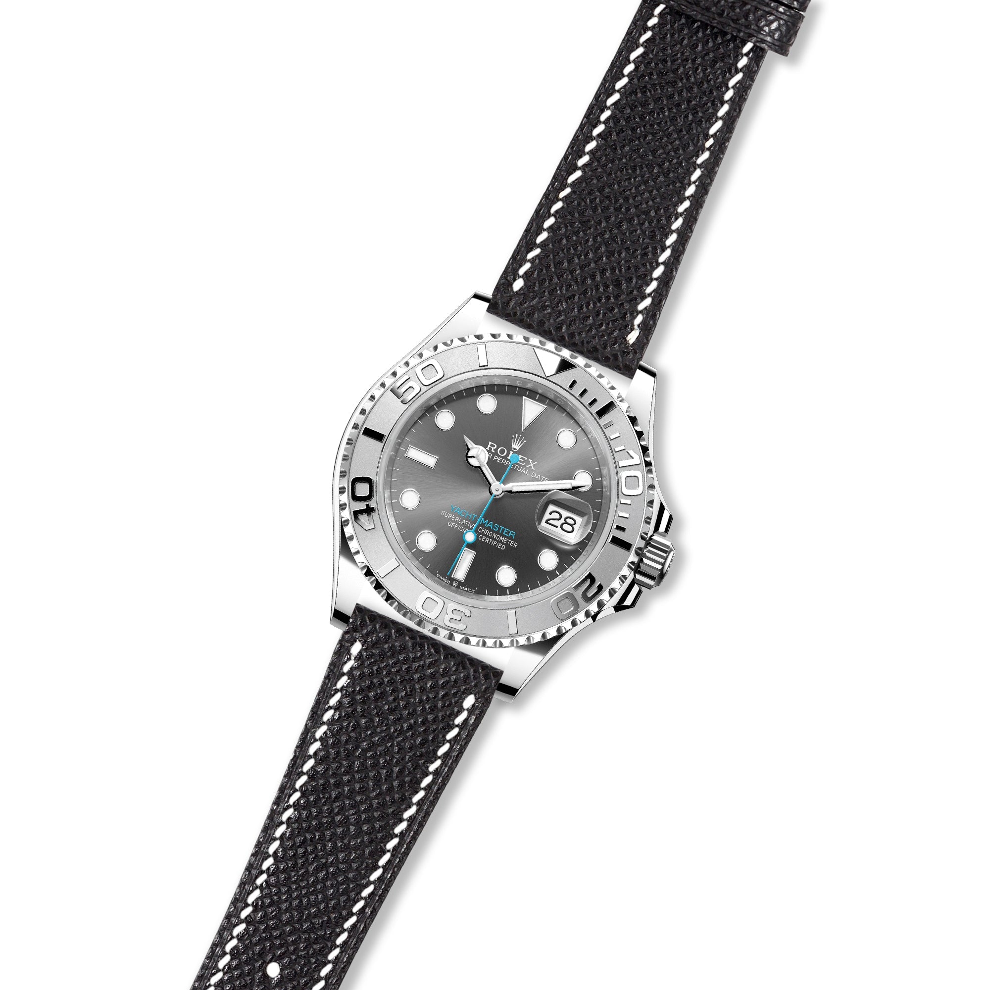 Transform your Rolex Yacht-Master with the refined elegance and exceptional comfort of our handcrafted Epsom calfskin leather watch strap. Sourced from the renowned Tanneries Du Puy in France, this premium strap features a distinctive embossed hatch grain pattern and remarkable durability, making it the perfect complement to your luxurious sailing companion.