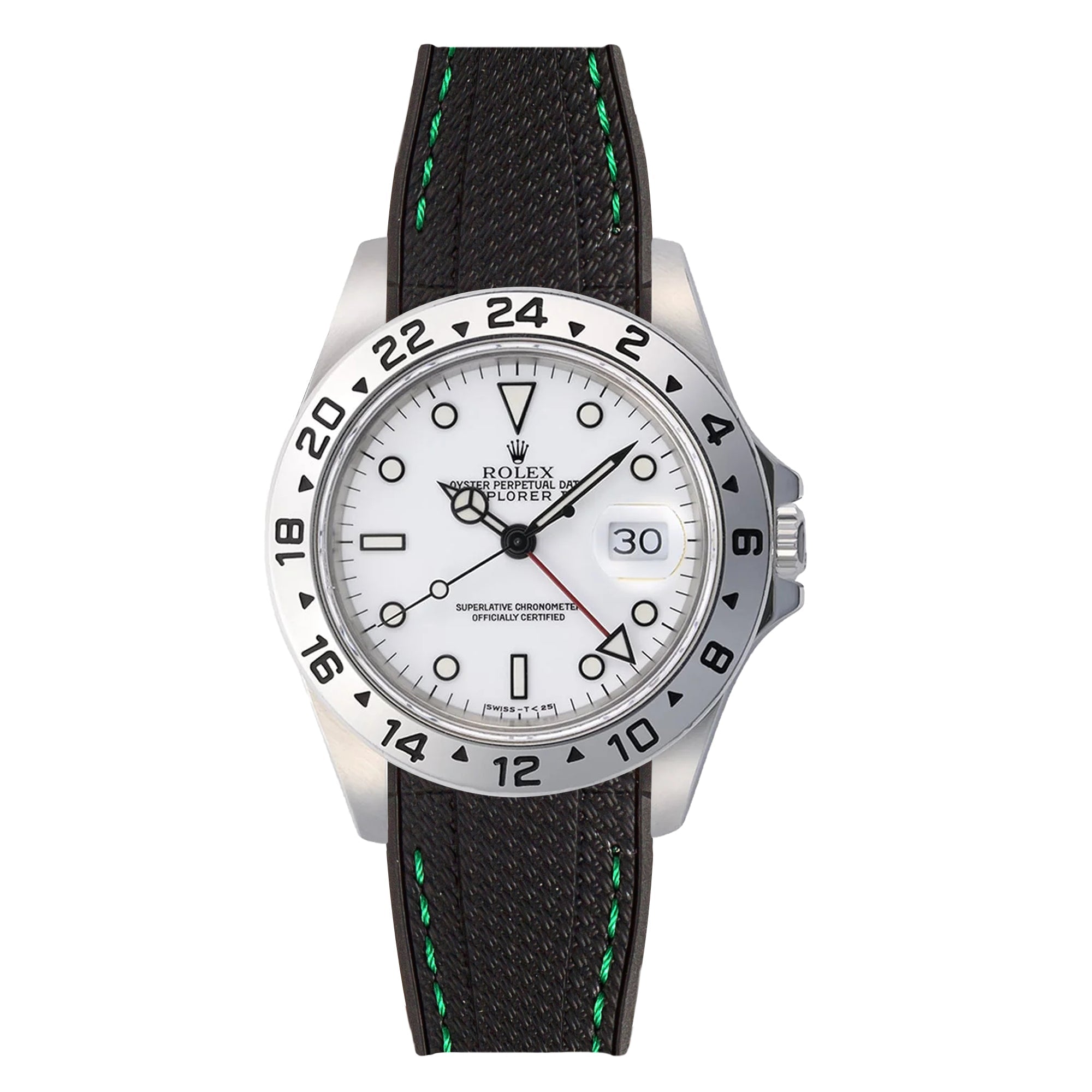 Disclaimer: This strap is not produced or approved by Rolex SA. It is a third-party accessory designed specifically to fit the Rolex Explorer II (16570 & 16550) models.