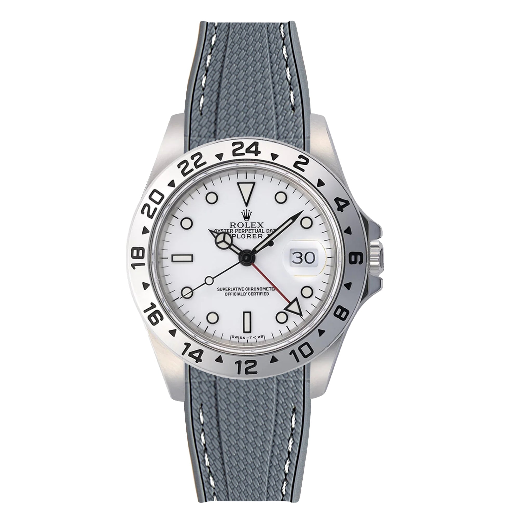 Textured Curved End Rubber Watch Strap For Rolex Explorer II - Grey with White Stitch (2405) Sale price€43,95 EUR