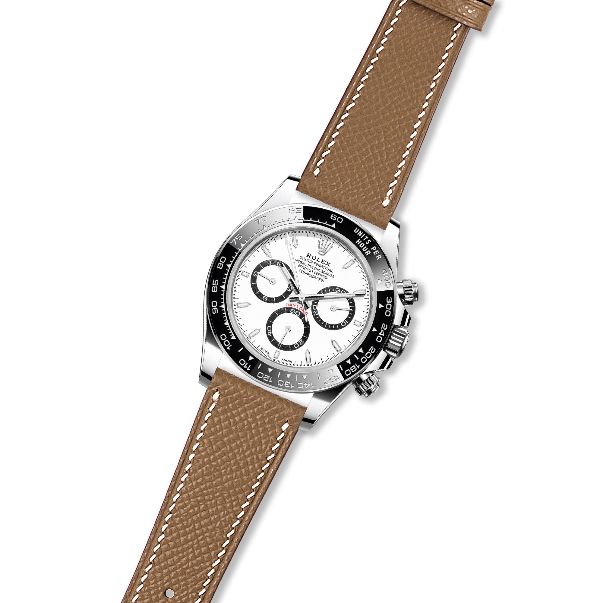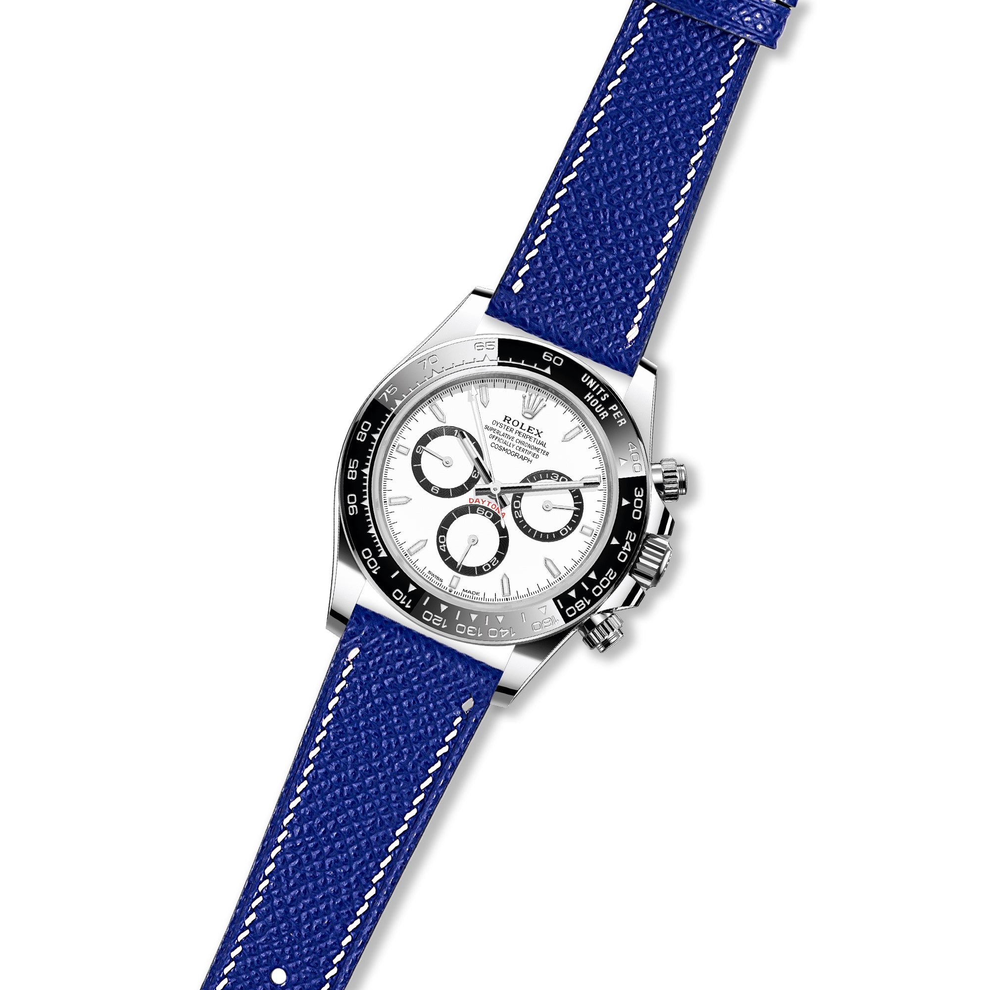 Disclaimer: This strap is not produced or approved by Rolex SA. It is a third-party accessory designed to fit the Rolex Daytona Cosmograph.
