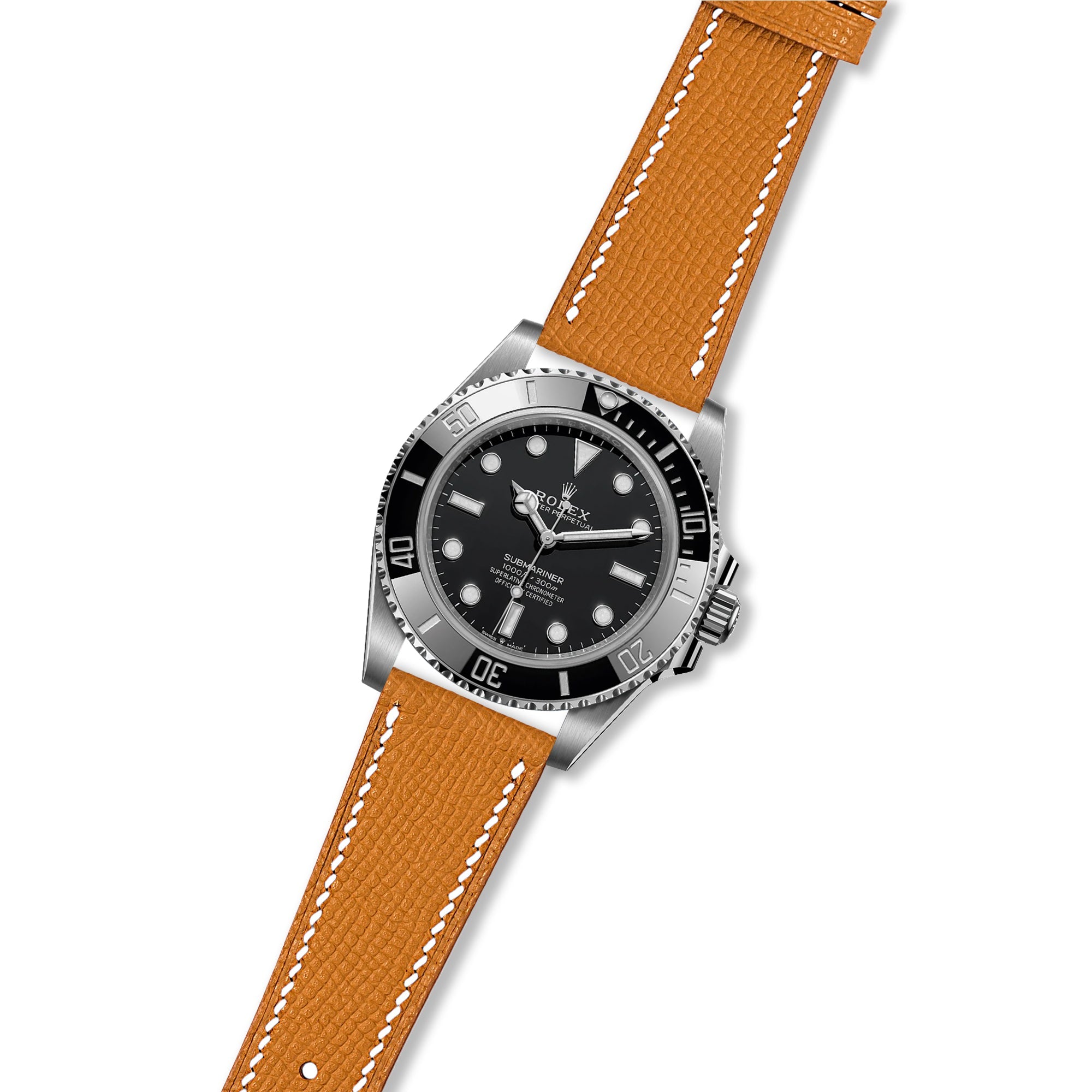 Transform your Rolex Submariner 40mm with the refined elegance and exceptional comfort of our handcrafted Epsom calfskin leather watch strap. Sourced from the renowned Tanneries Du Puy in France, this premium strap features a distinctive embossed hatch grain pattern and remarkable durability, making it the perfect complement to your iconic dive watch.