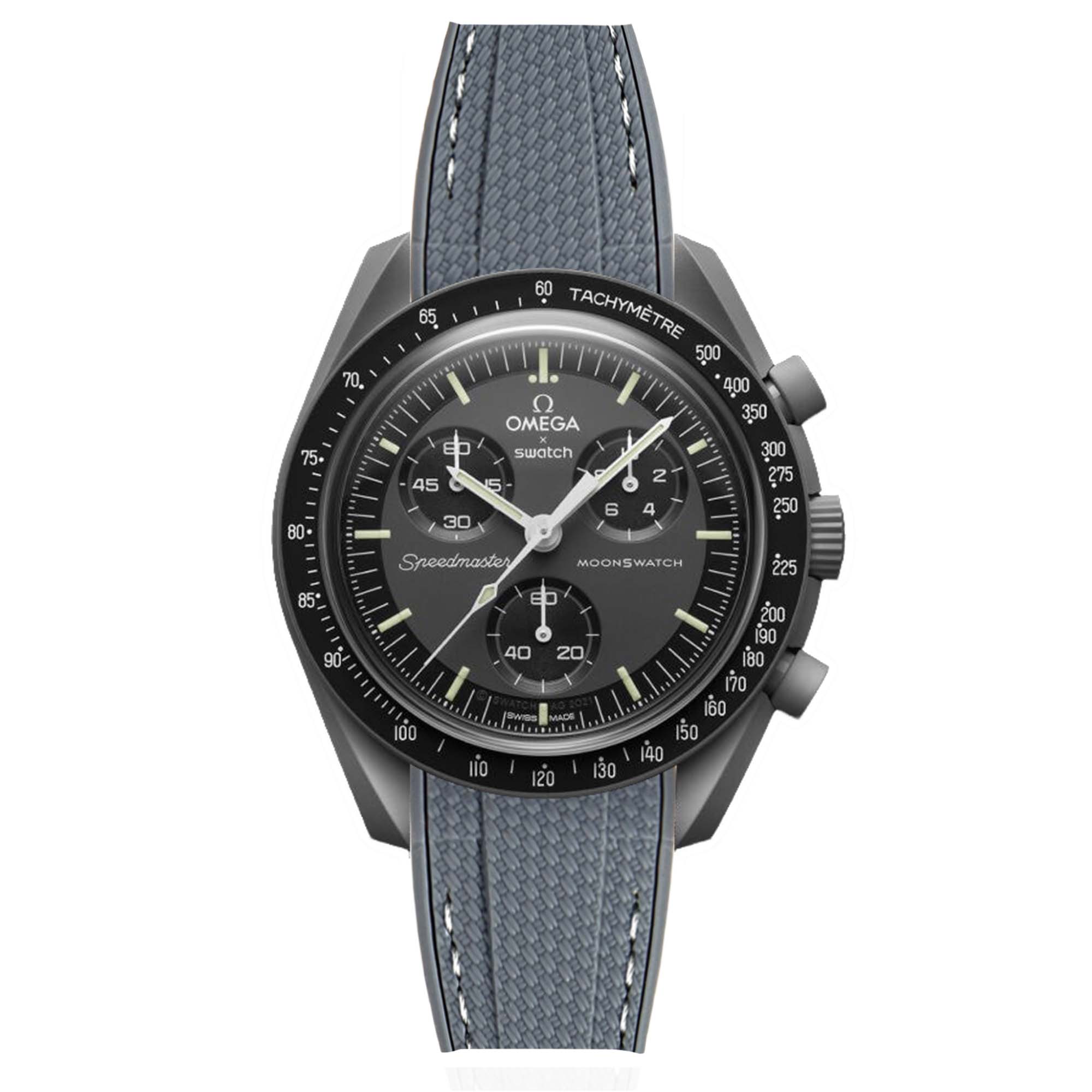 Enhance your Omega x Swatch Moonswatch Mission to Earthphase with our Textured Curved End Silicone Strap. This premium strap is designed to provide the perfect blend of style, comfort, and durability for your unique timepiece.