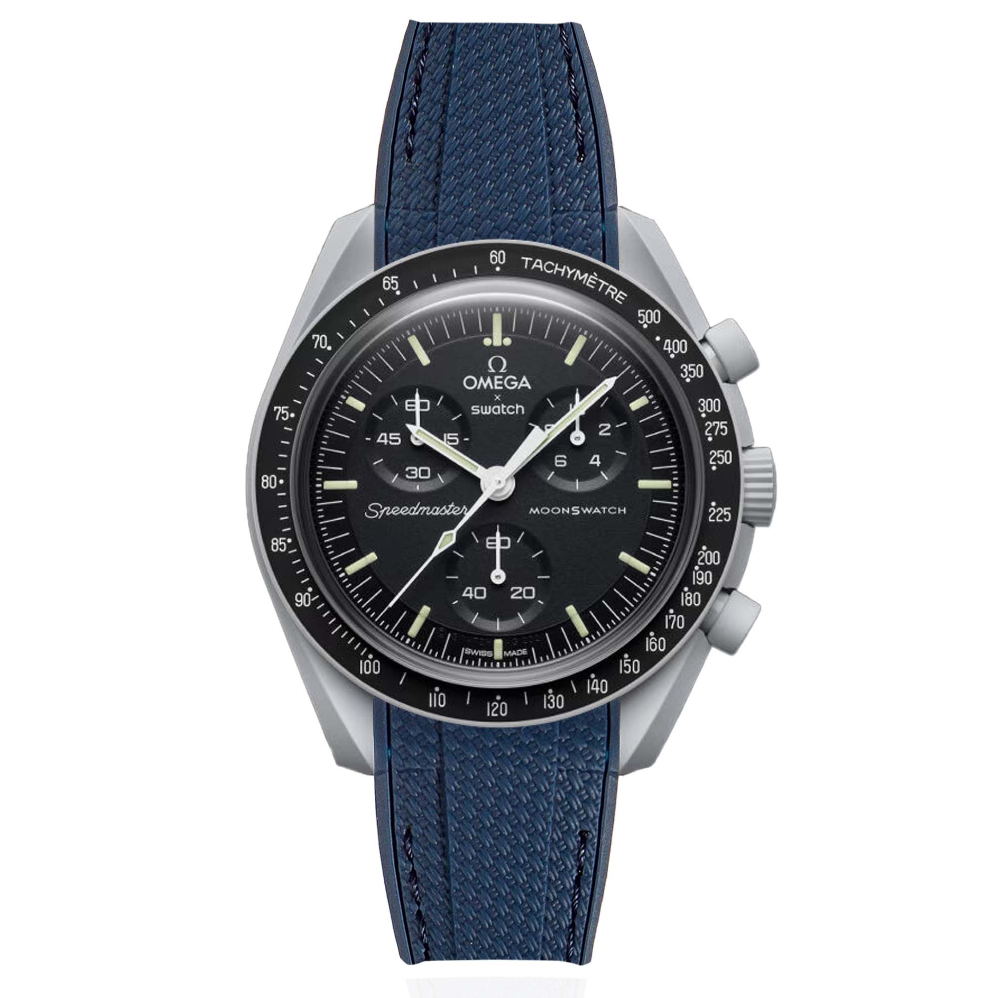 Enhance your Omega x Swatch Moonswatch Mission to Mercury with our Textured Curved End Silicone Strap. This premium strap is designed to provide the perfect blend of style, comfort, and durability for your unique timepiece.