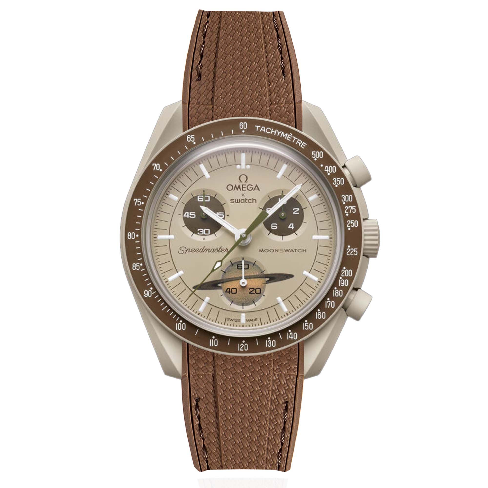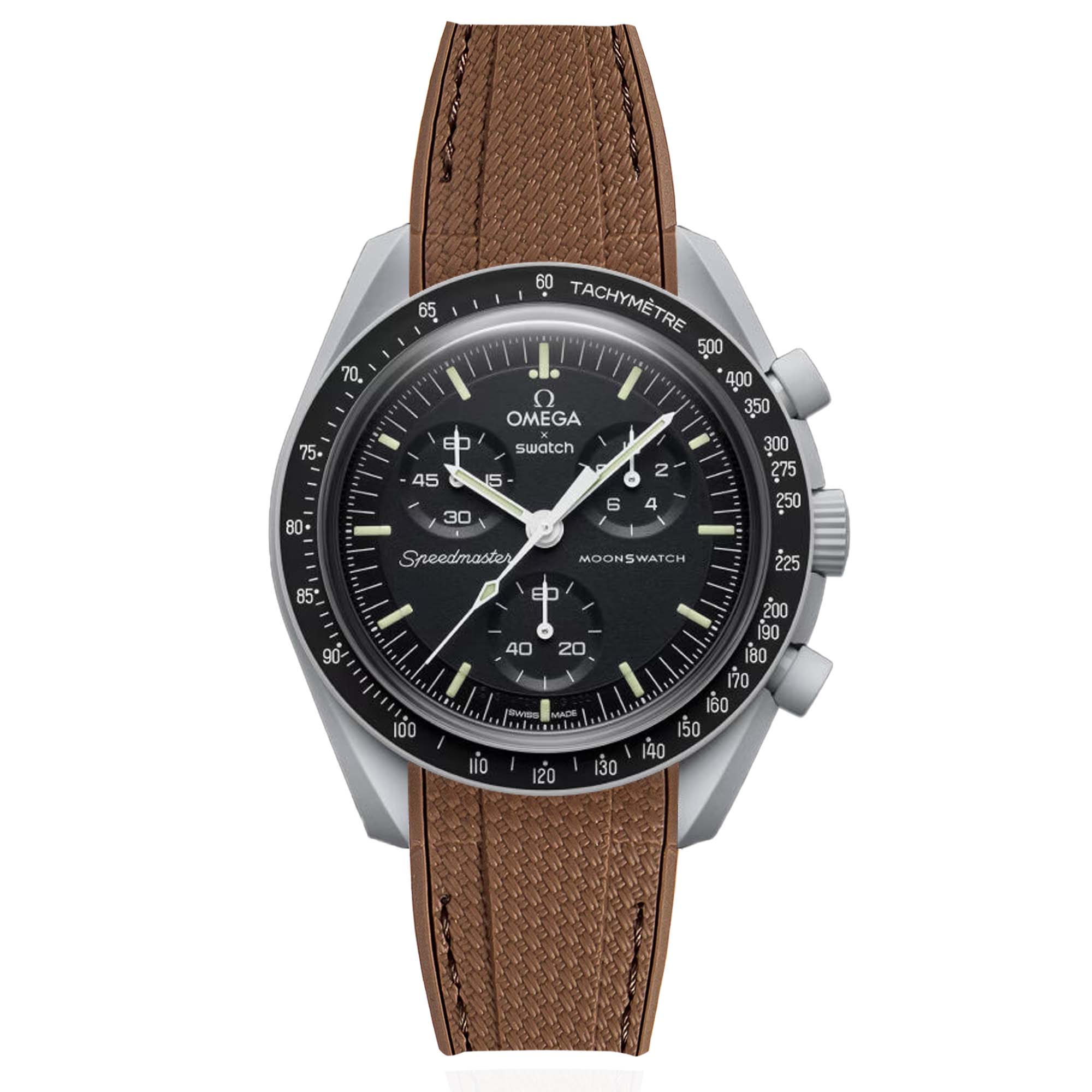Textured Curved End Rubber Watch Strap for Omega x Swatch Moonswatch - Mission to Mercury - Brown (2405)