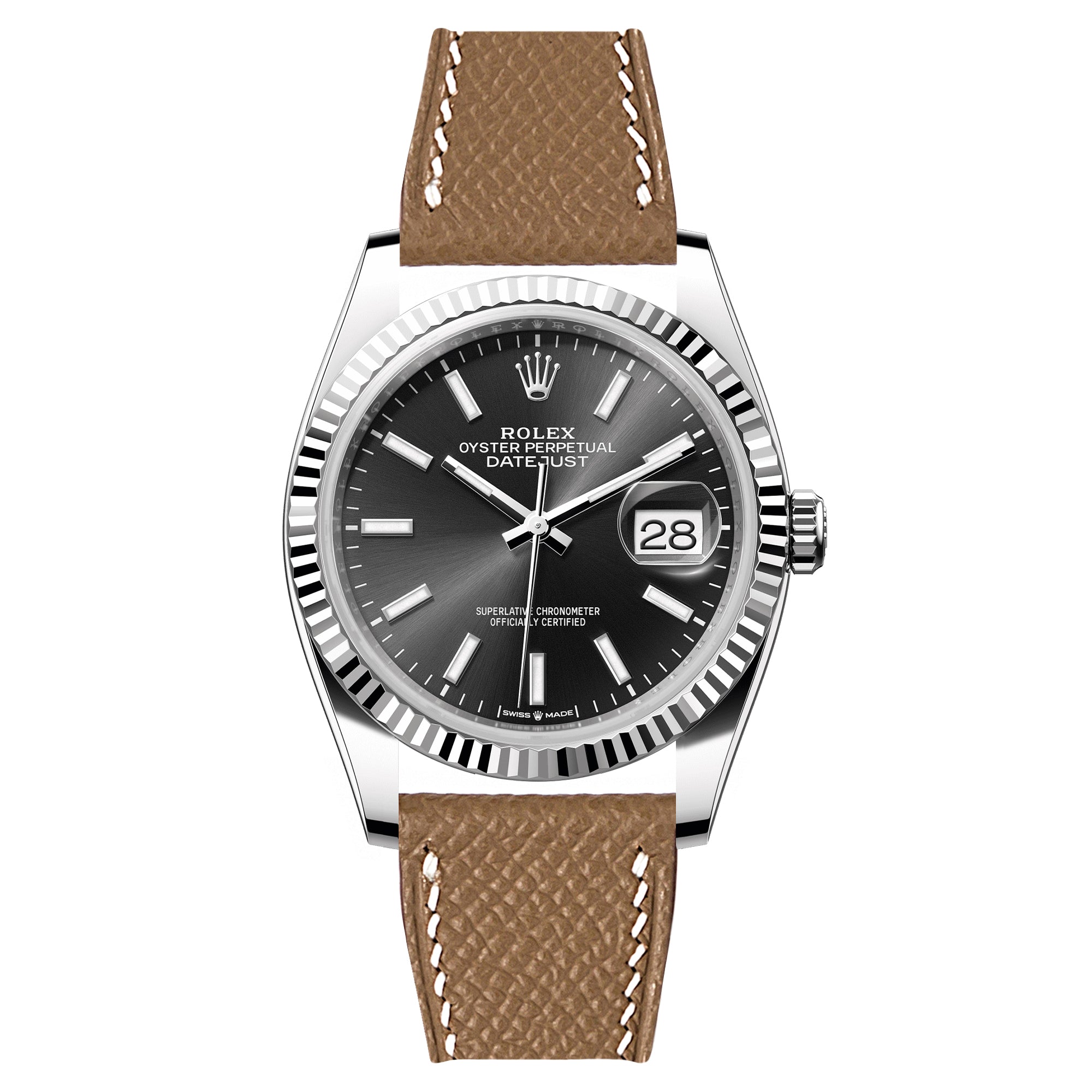 Transform your Rolex Yacht-Master with the refined elegance and exceptional comfort of our handcrafted Epsom calfskin leather watch strap. Sourced from the renowned Tanneries Du Puy in France, this premium strap features a distinctive embossed hatch grain pattern and remarkable durability, making it the perfect complement to your luxurious sailing companion.
