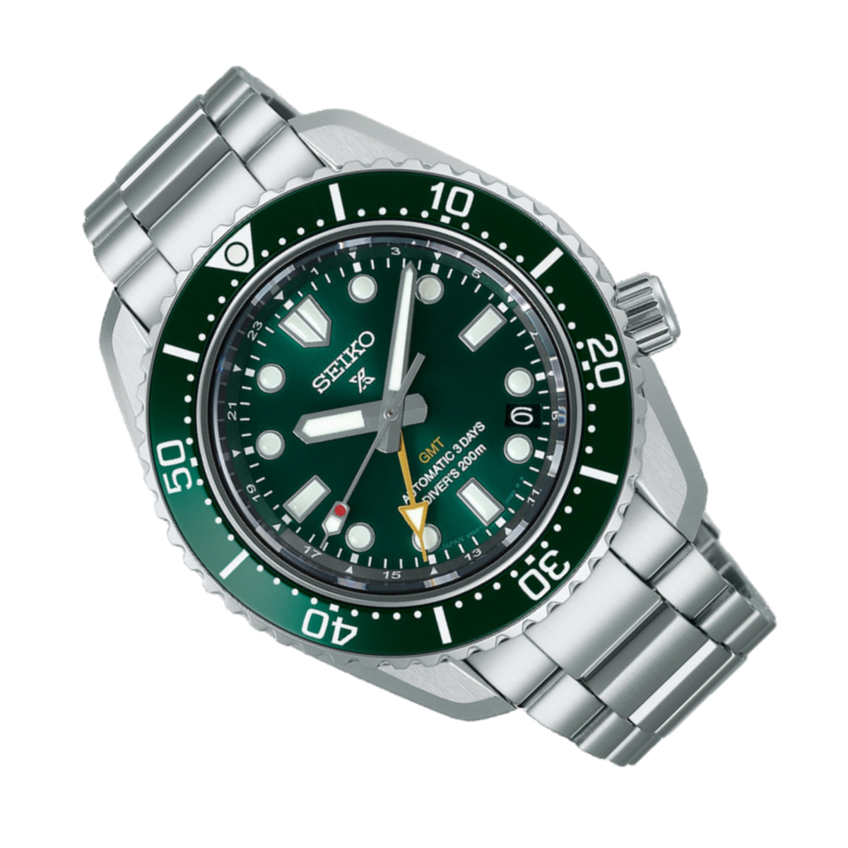 The Seiko Prospex GMT Scuba Divers (SBEJ009) is a high-performance dive watch that seamlessly blends functionality with style. Its vibrant green dial and robust stainless steel construction make it a perfect companion for underwater exploration. This timepiece is powered by the automatic Caliber 6R54 movement, offering precise timekeeping and a GMT function for tracking multiple time zones. The LumiBrite hands and markers ensure excellent visibility in low-light conditions, while the screw-down crown and 200m water resistance guarantee protection during dives.