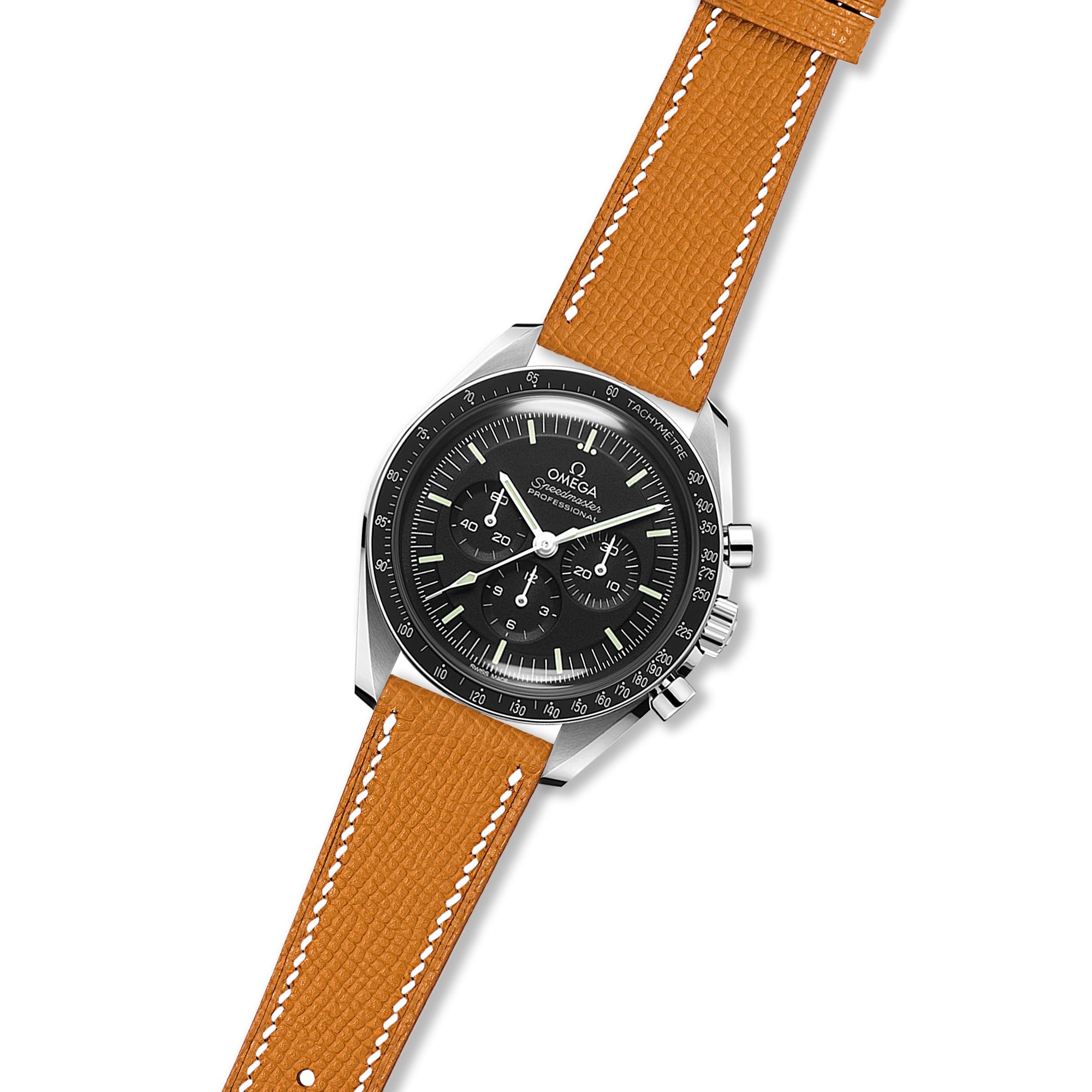 Elevate your Omega Speedmaster Moonwatch with the exquisite Pueblo Calfskin Leather Strap, meticulously handcrafted in Italy. Sourced from the prestigious Badalassi Carlo tannery, this exceptional strap embodies a harmonious blend of rugged sophistication and timeless appeal, perfectly complementing your iconic Speedmaster.