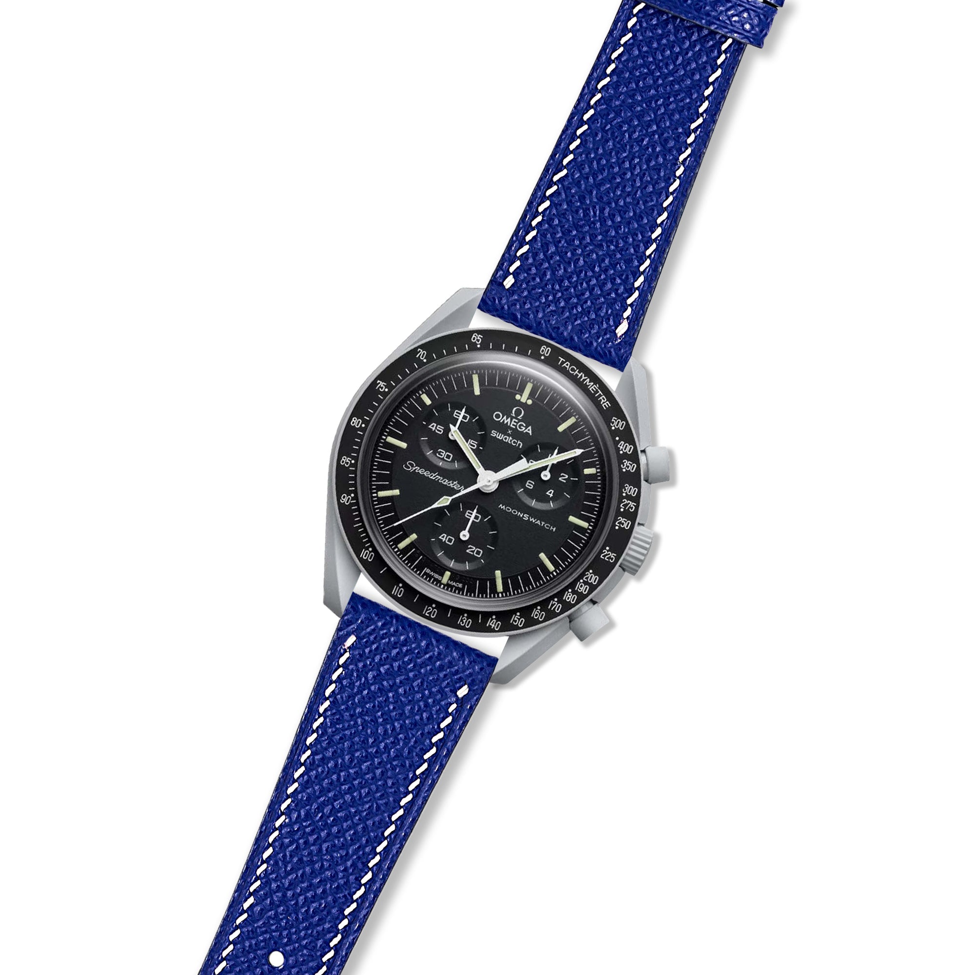 Elevate your Omega x Swatch Moonswatch Mission to the Moon with a touch of French elegance. Our Epsom Calfskin Leather Strap, handcrafted from premium leather sourced from the renowned Tanneries Du Puy, adds a sophisticated and refined touch to your Bioceramic timepiece.