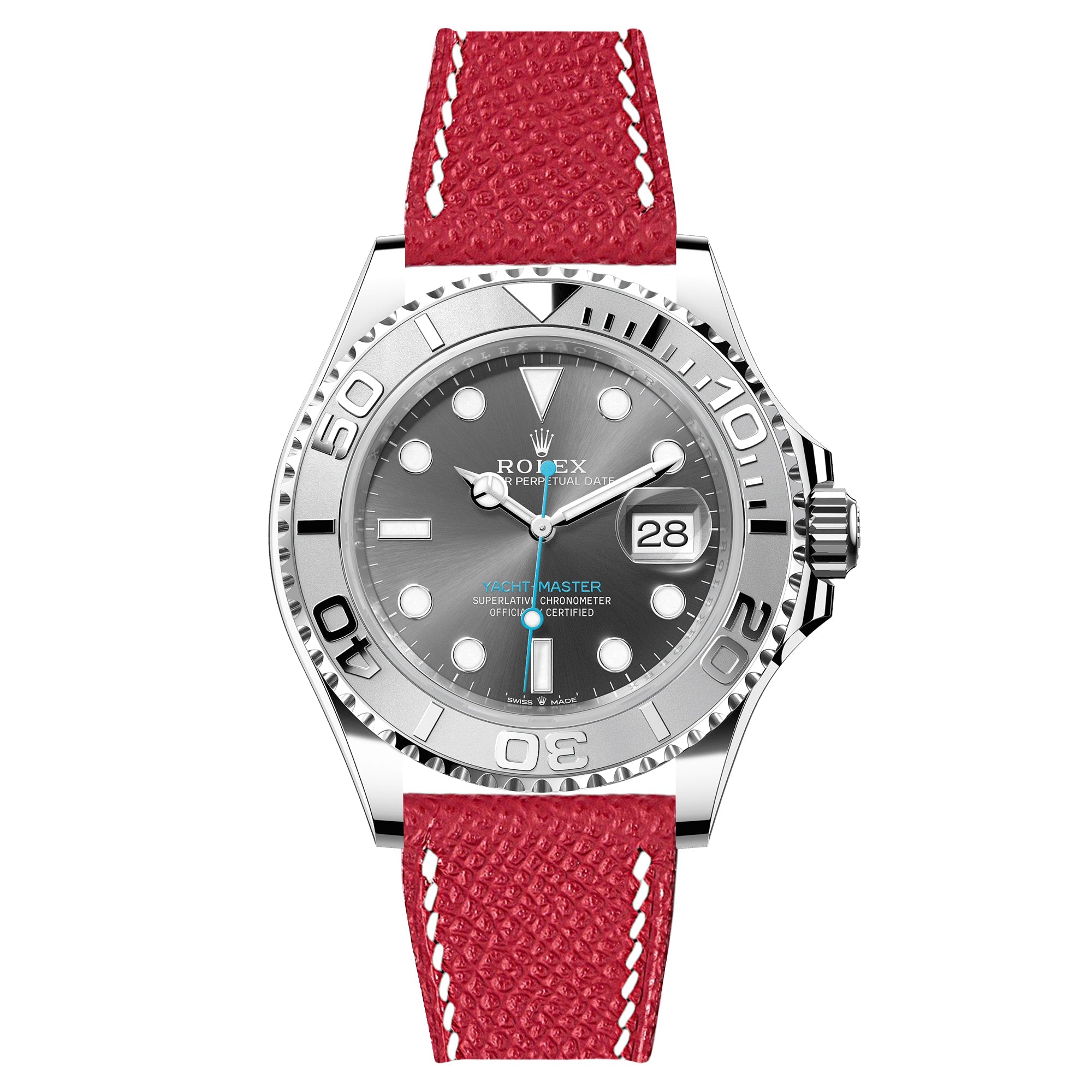 Transform your Rolex Yacht-Master with the refined elegance and exceptional comfort of our handcrafted Epsom calfskin leather watch strap. Sourced from the renowned Tanneries Du Puy in France, this premium strap features a distinctive embossed hatch grain pattern and remarkable durability, making it the perfect complement to your luxurious sailing companion.