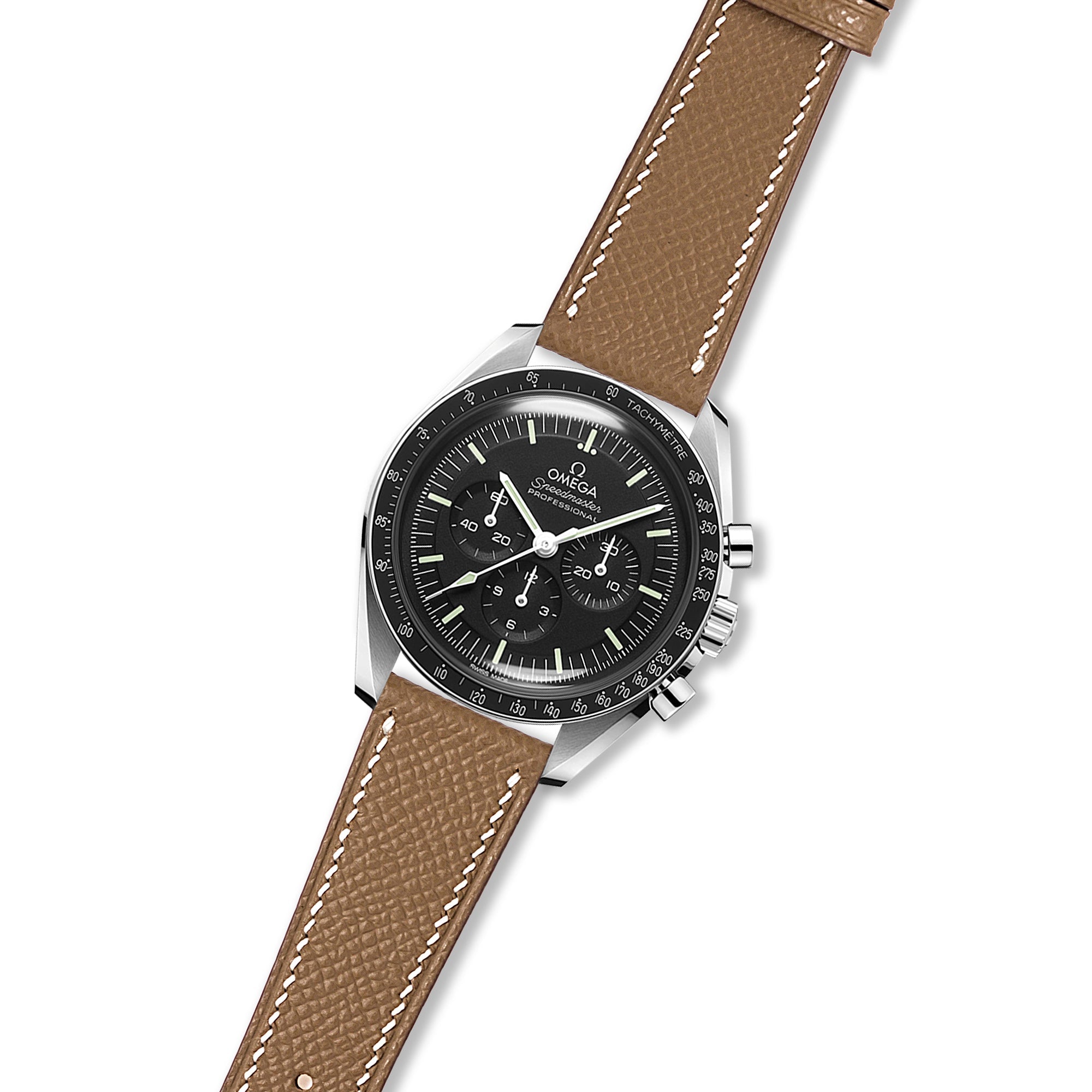 Disclaimer: This strap is not produced or approved by Omega SA. It is a third-party accessory designed to fit the Omega Speedmaster Moonwatch.