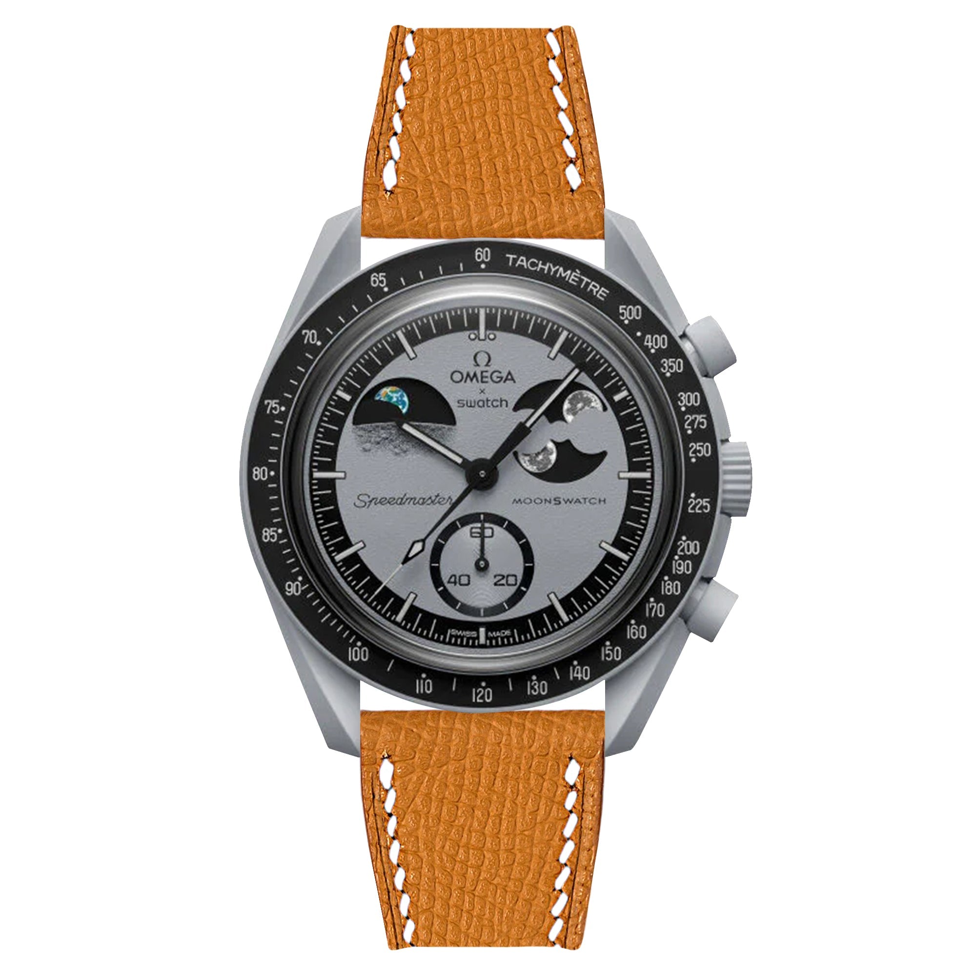 Epsom Leather Watch Band for Omega x Swatch Moonswatch - Mission to the Moon - Quick-Release - Orange (2439)