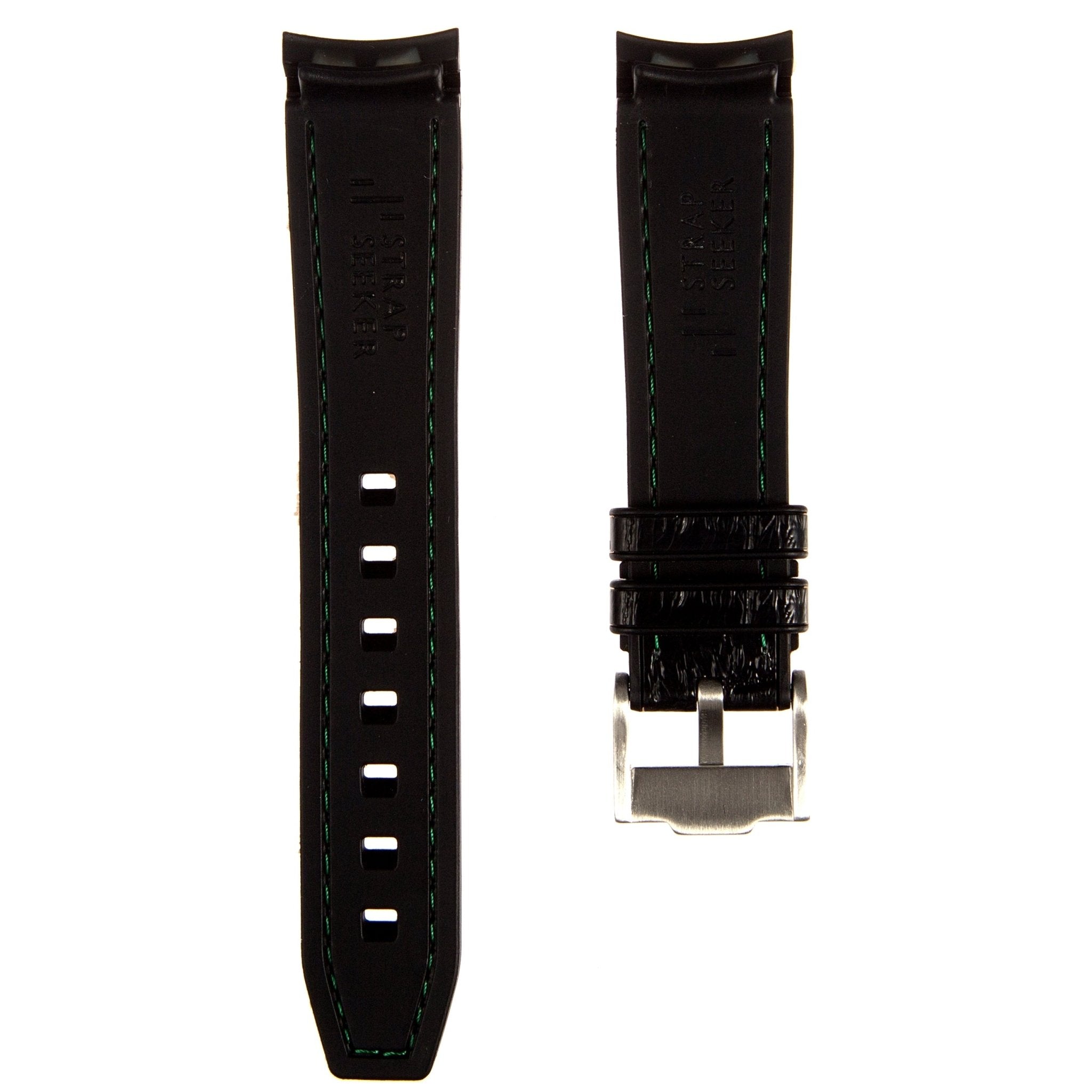 Embossed Alligator Curved End Premium Rubber Watch Strap for Omega Speedmaster Moonwatch - Black with Green Stitch (2406)