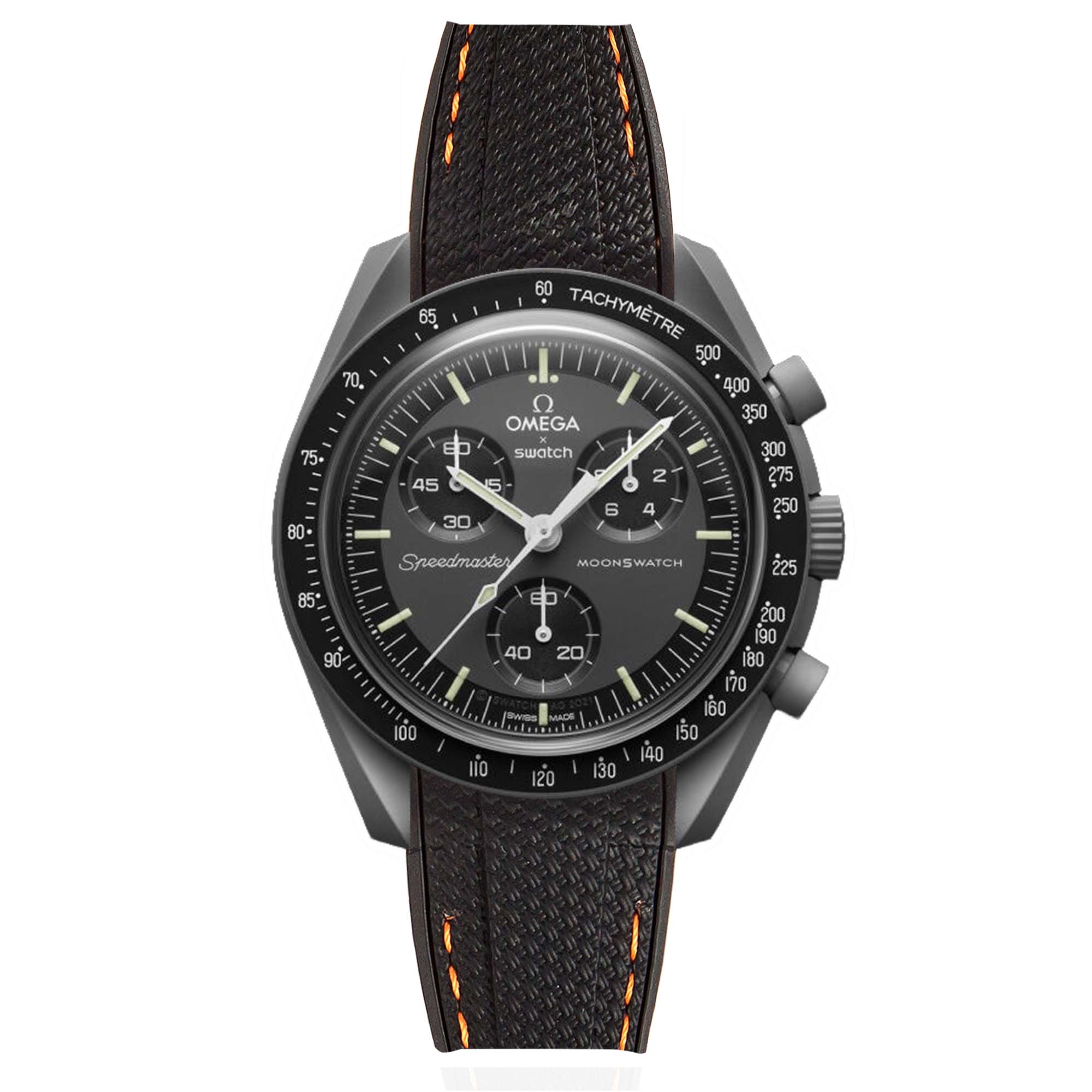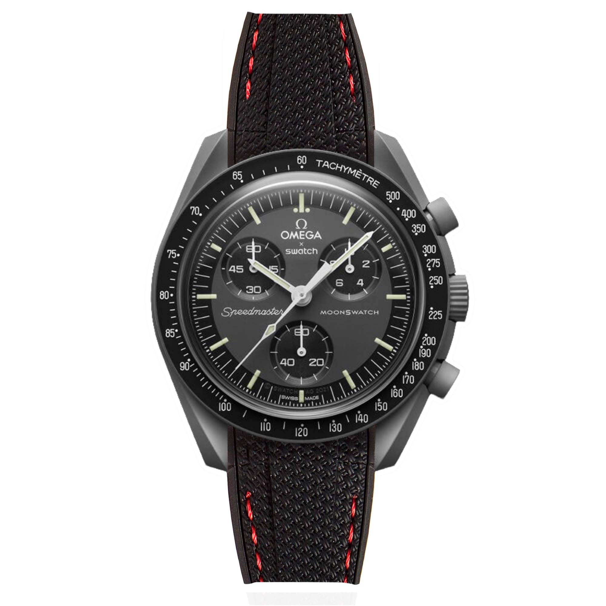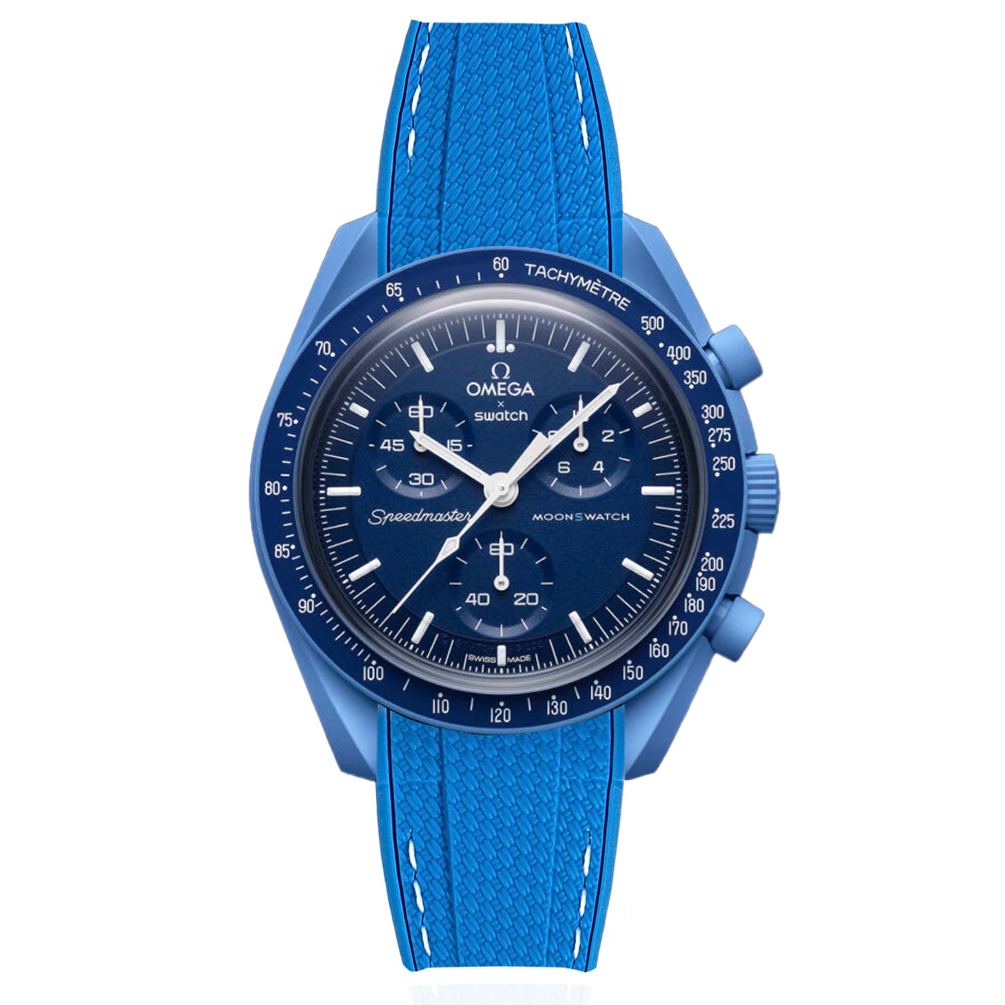Textured Curved End Rubber Watch Band for Omega x Swatch Moonswatch - Mission to the Super Blue Moonphase - Black with Blue Stitch (2405) Sale price$78.00 AUD