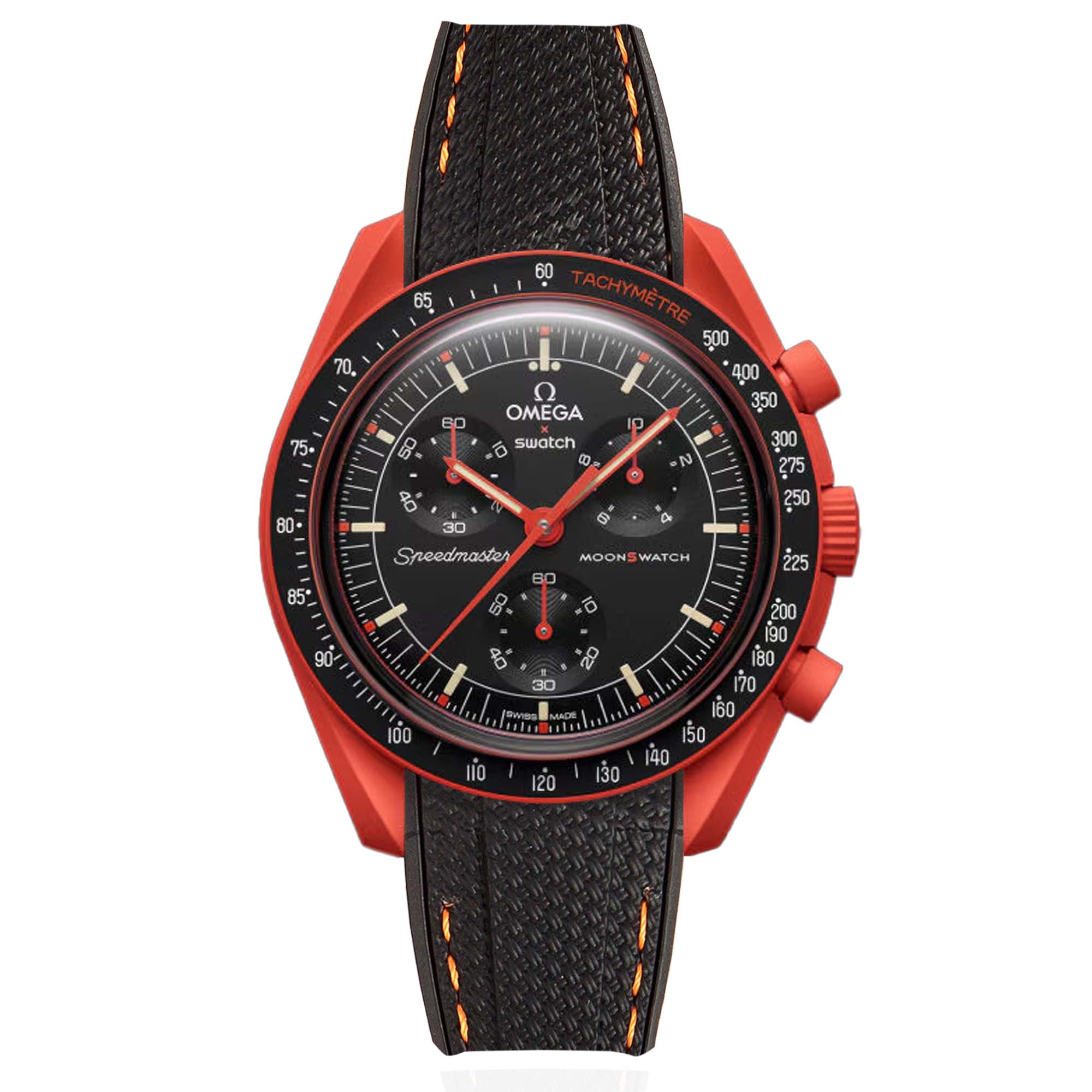 Textured Curved End Rubber Watch Strap for Omega Speedmaster Moonwatch - Black with Orange Stitch (2405) Sale price$78.00 AUD