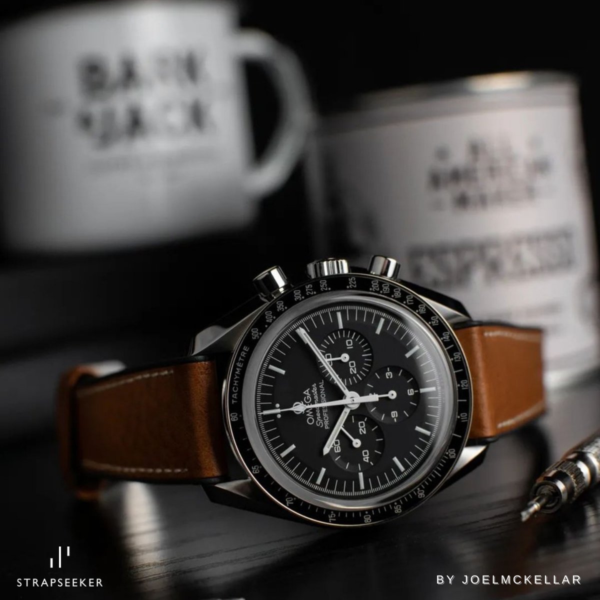 Elevate your Omega Seamaster 300 with the Watts Italian Leather Performance Hybrid Strap, a sophisticated fusion of classic style and modern functionality. This strap seamlessly integrates the timeless elegance of Italian calfskin leather with the resilient performance of an FKM rubber core, creating a refined yet durable accessory for your cherished timepiece.