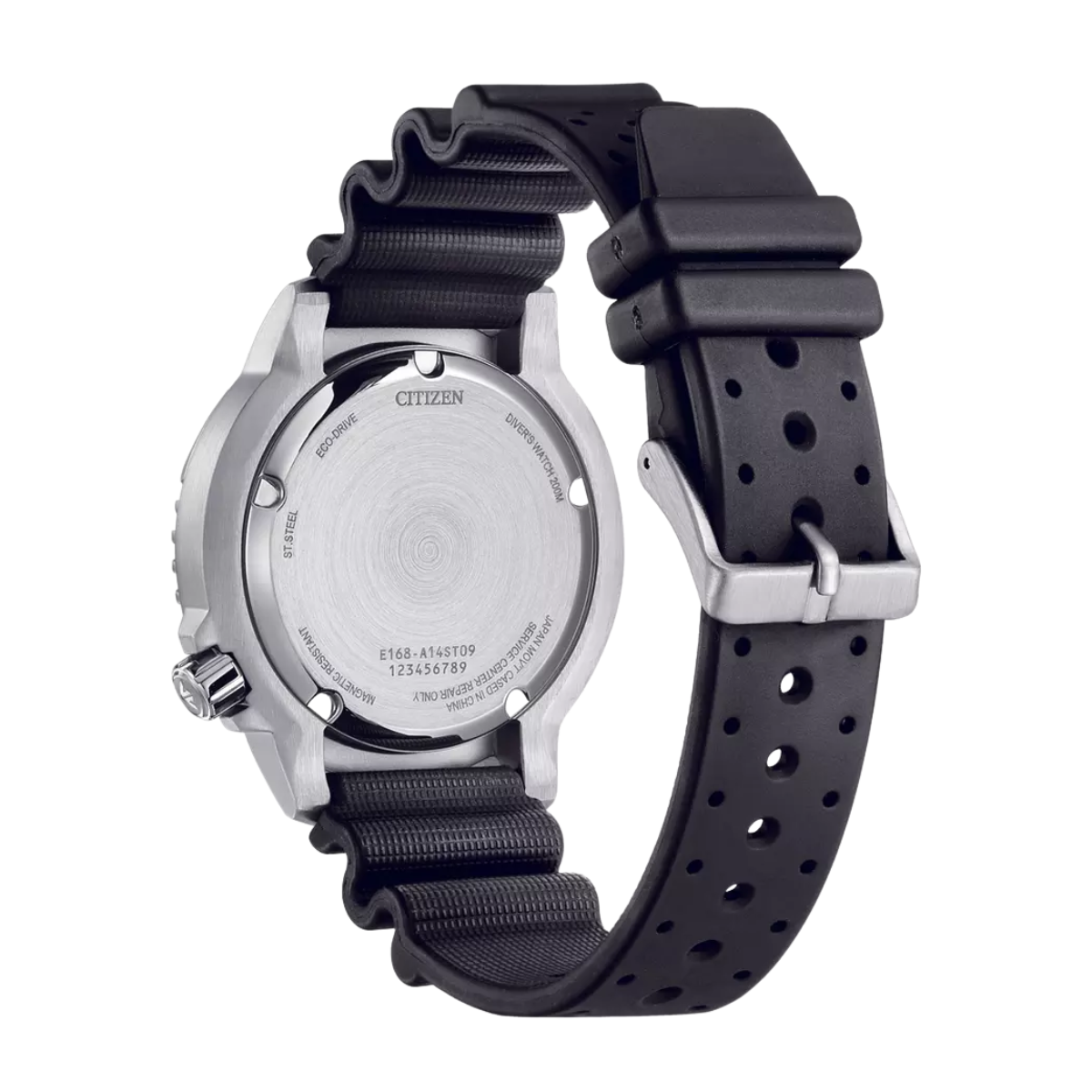 Experience the convenience and durability of the Citizen Promaster Diver's 200m BN0166-01L. This Eco-Drive watch is powered by light, eliminating the need for battery changes. Its stainless steel case, polyurethane strap, and scratch-resistant mineral crystal are designed to withstand the rigors of diving. With 200m water resistance and ISO 6425 certification, it's a reliable and high-performance dive watch.
