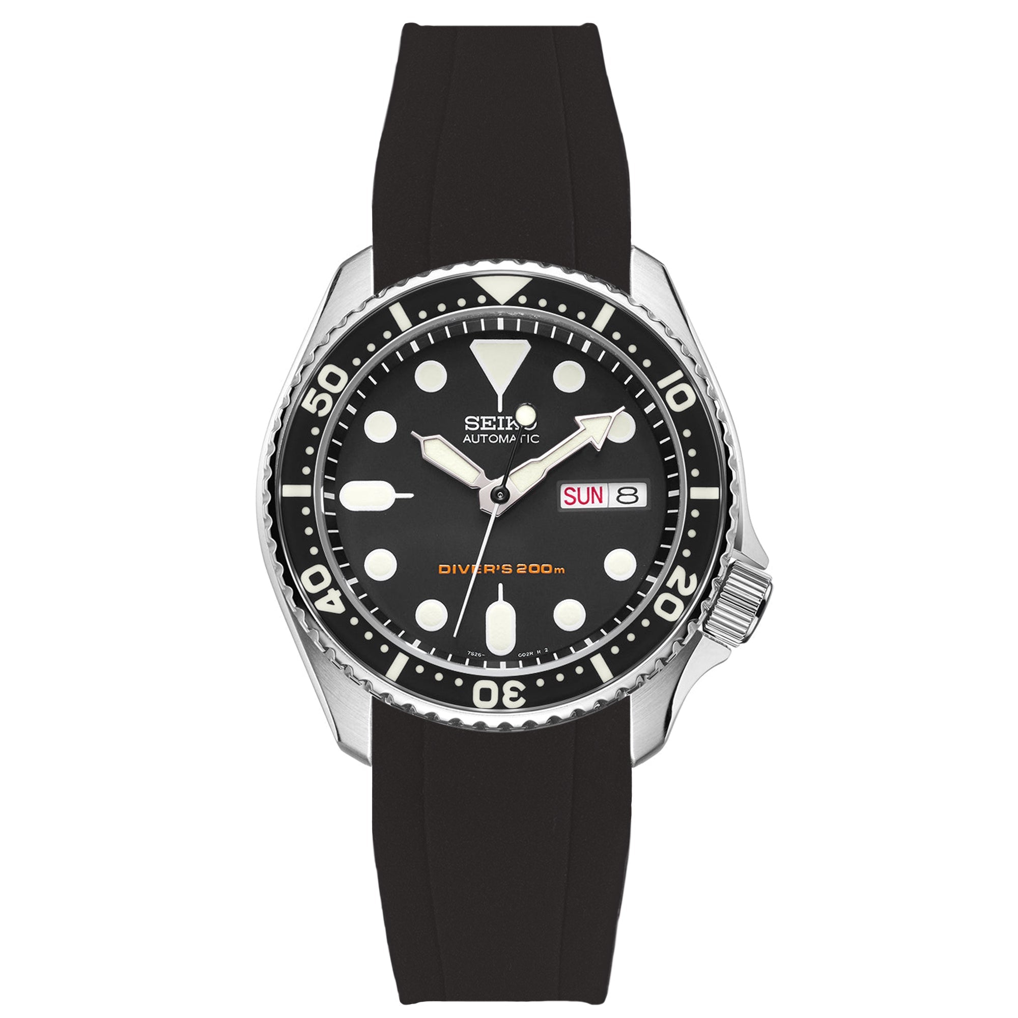 Enhance your Seiko 5 Sports SKX or SRPD series watch with our Curved End Silicone Strap. This durable and comfortable strap is designed to elevate your timepiece with style and functionality.