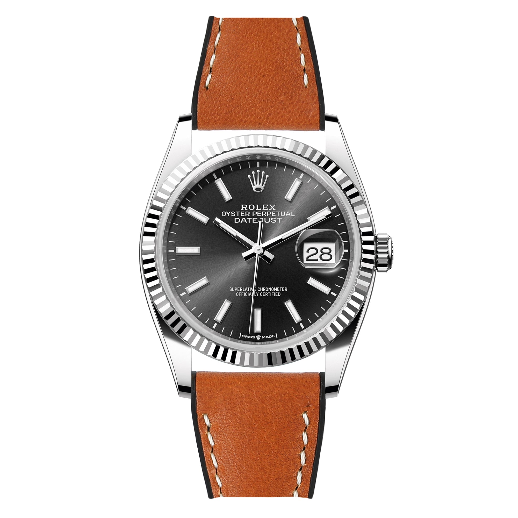 Enhance your Rolex Oyster with the Watts Italian Leather Performance Hybrid Strap, a sophisticated blend of timeless elegance and modern resilience. This strap seamlessly unites the refined beauty of Italian calfskin leather with the robust performance of an FKM rubber core, creating a luxurious and comfortable accessory for your cherished timepiece.