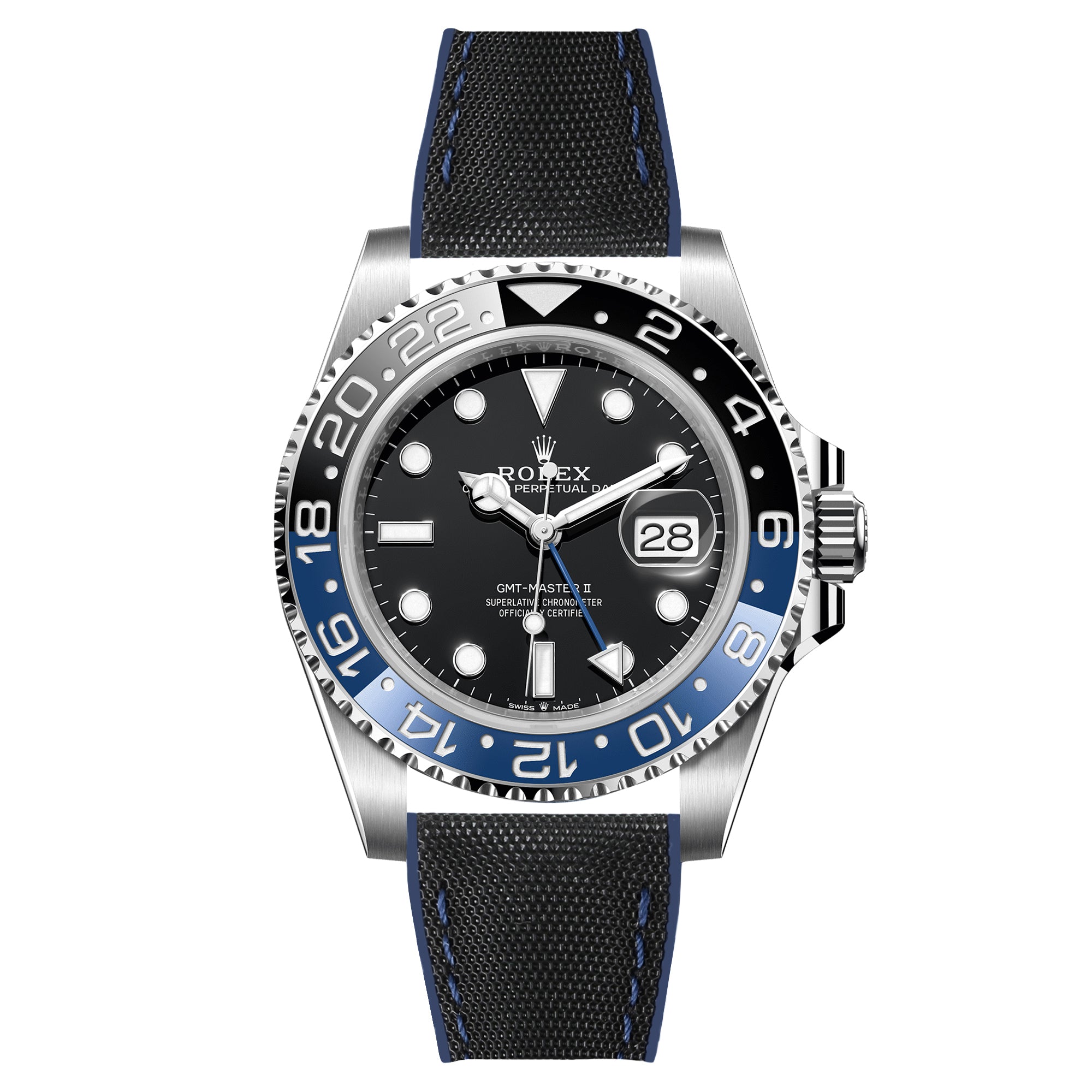 Elevate your Rolex Explorer II with the Luca Canvas Nylon Performance Strap, a perfect fusion of rugged durability and refined style. Designed for the modern adventurer, this strap seamlessly blends the timeless appeal of canvas nylon with the resilient performance of an FKM rubber core, creating a versatile and comfortable accessory for your cherished timepiece.