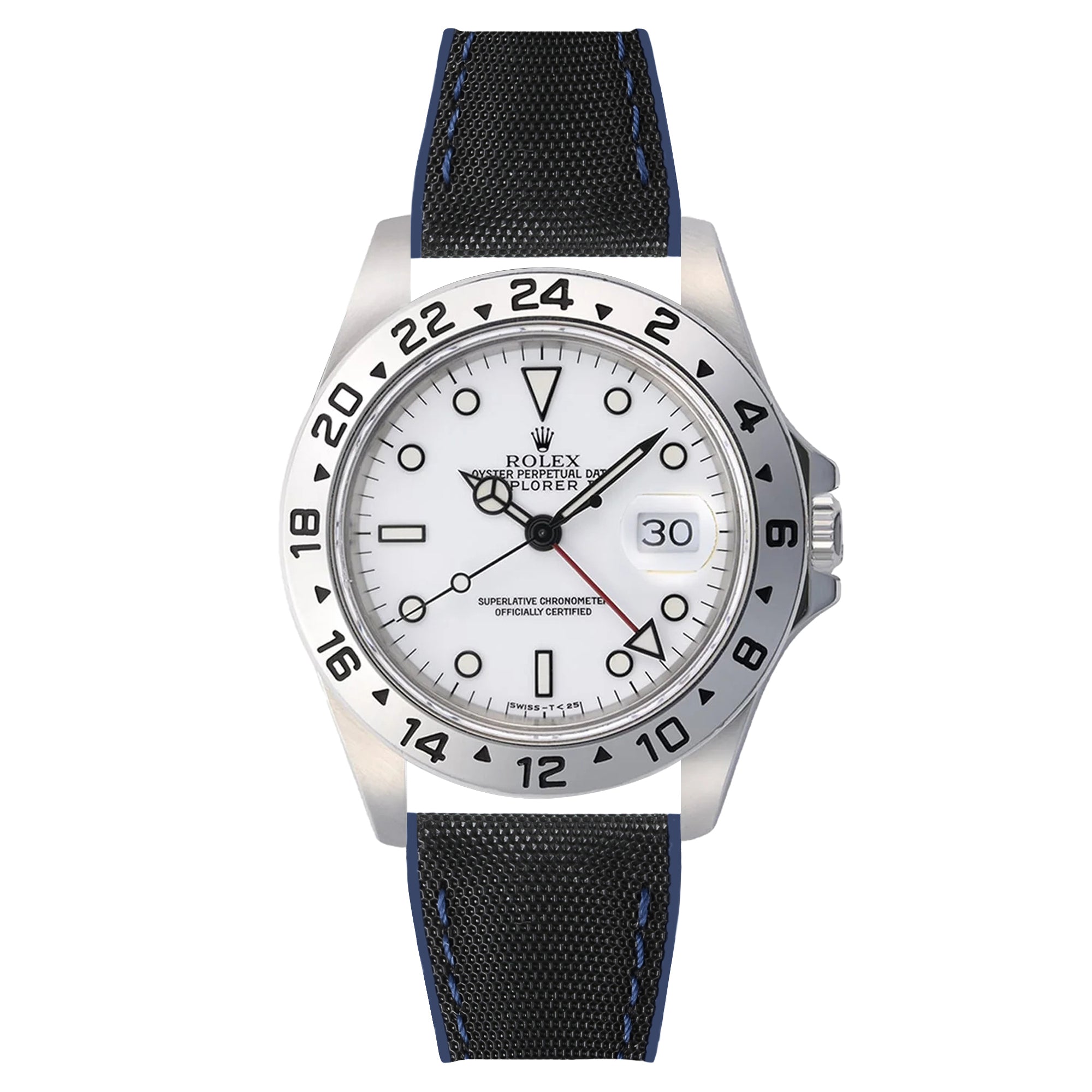 Elevate your Rolex Submariner 40mm with the Luca Canvas Nylon Performance Strap, a perfect fusion of rugged durability and refined style. Designed for the modern adventurer, this strap seamlessly blends the timeless appeal of canvas nylon with the resilient performance of an FKM rubber core, creating a versatile and comfortable accessory for your cherished timepiece.