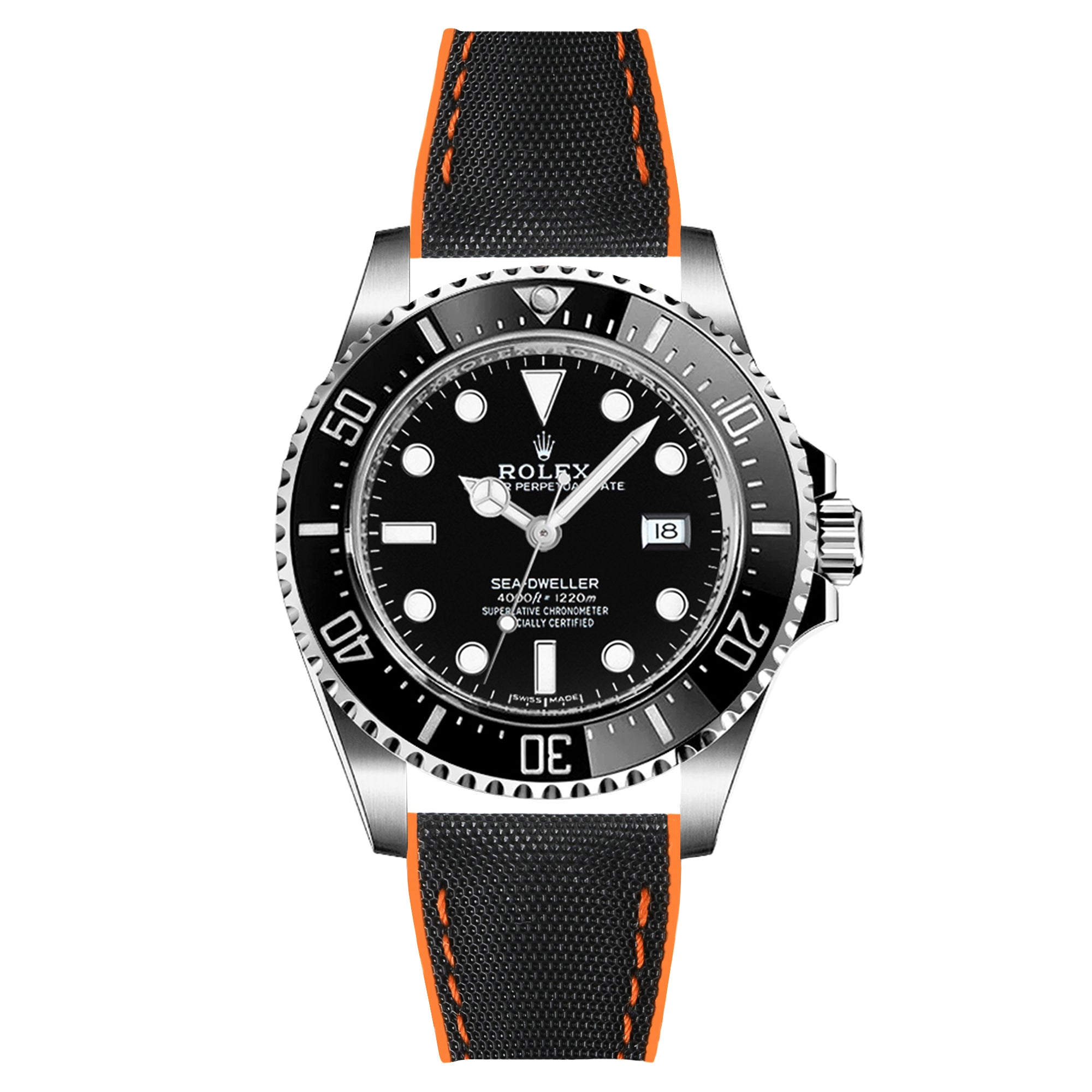 Luca Canvas Nylon & FKM Rubber Hybrid Performance Watch Band for Rolex Submariner 40mm - Orange (8097)
