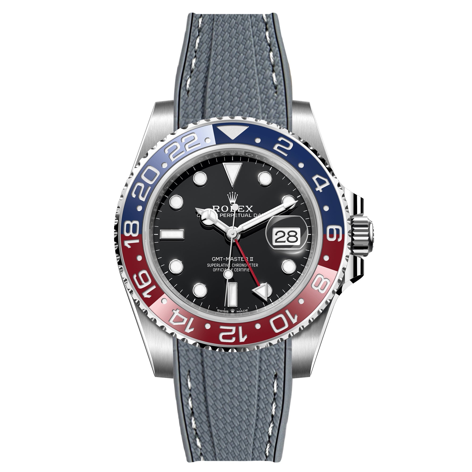 Enhance your Rolex GMT Master I & II with our Textured Curved End Rubber Strap, designed for exceptional comfort, durability, and style.