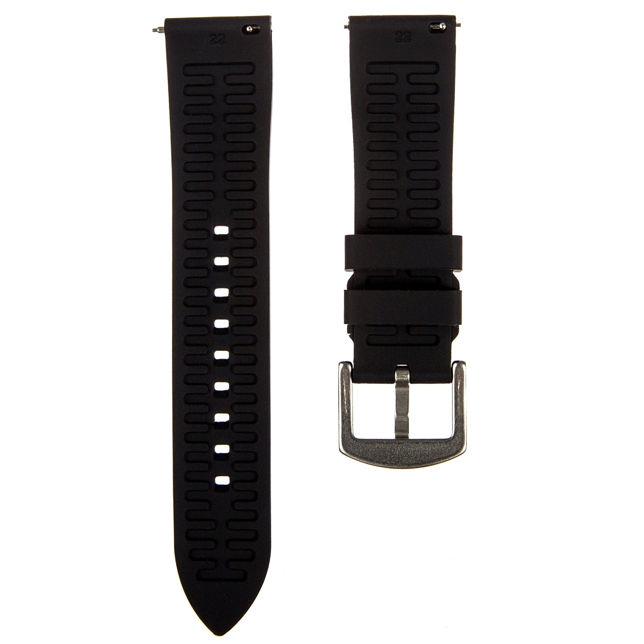 Experience classic minimalism and enhanced comfort with our Fort FKM Rubber Strap. Crafted from durable FKM rubber, its sleek design complements any watch style, from dressy to sporty. Subtle grooves on the underside promote ventilation, ensuring all-day comfort. Quick-release spring bars allow for effortless changes, while the durable stainless steel buckle adds a touch of refinement.