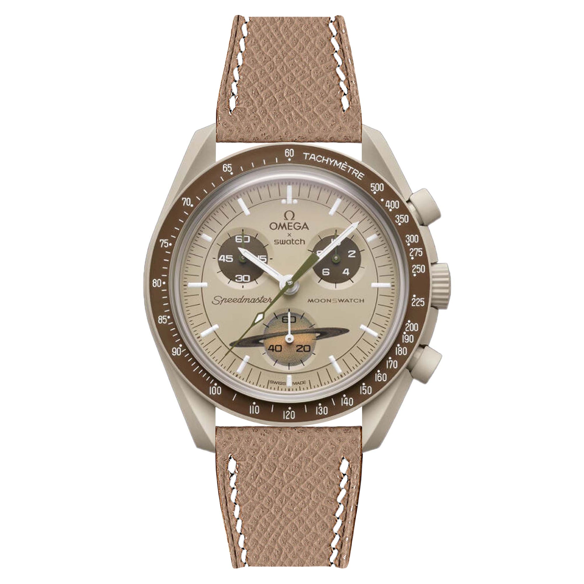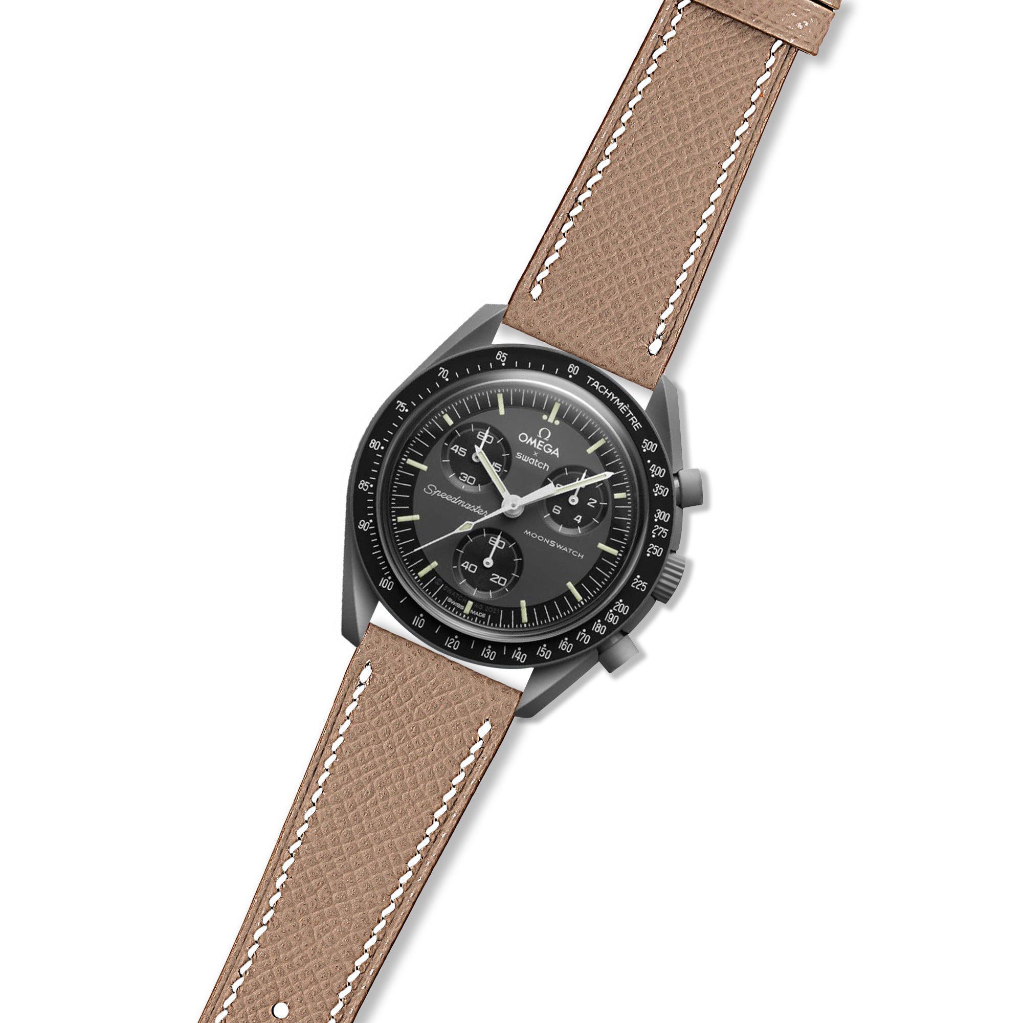 Elevate your Omega x Swatch Moonswatch Mission to Mercury with a touch of French elegance. Our Epsom Calfskin Leather Strap, handcrafted from premium leather sourced from the renowned Tanneries Du Puy, adds a sophisticated and refined touch to your Bioceramic timepiece.