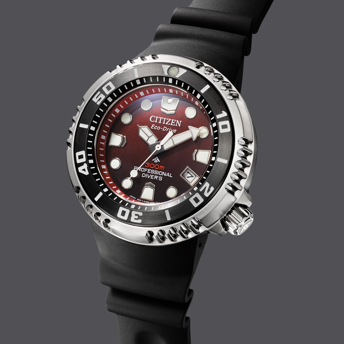 Experience the convenience of Eco-Drive technology with the Citizen Promaster Marine Series BN1024-01Z. This solar-powered dive watch never needs a battery change and features a stylish burgundy dial, a comfortable rubber strap, and a durable stainless steel case. Its 200m water resistance makes it suitable for both water sports and everyday wear.