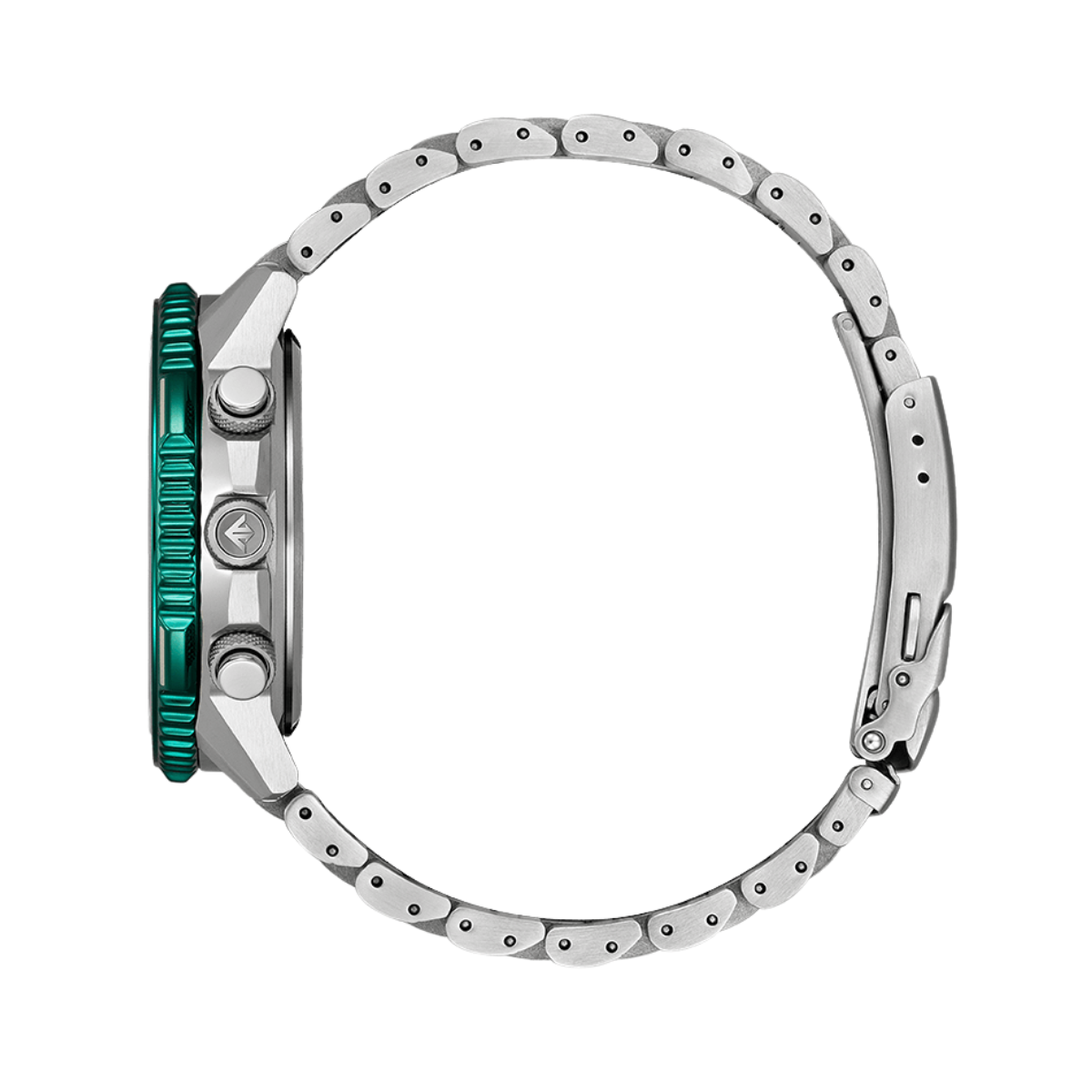 Experience the convenience and sustainability of Eco-Drive technology with the Citizen Promaster SKY CB5004-59W. This watch harnesses the power of light, eliminating the need for battery changes and ensuring reliable timekeeping wherever you go. Its world time function, radio-controlled accuracy, and vibrant green dial make it the perfect travel companion for the modern adventurer.