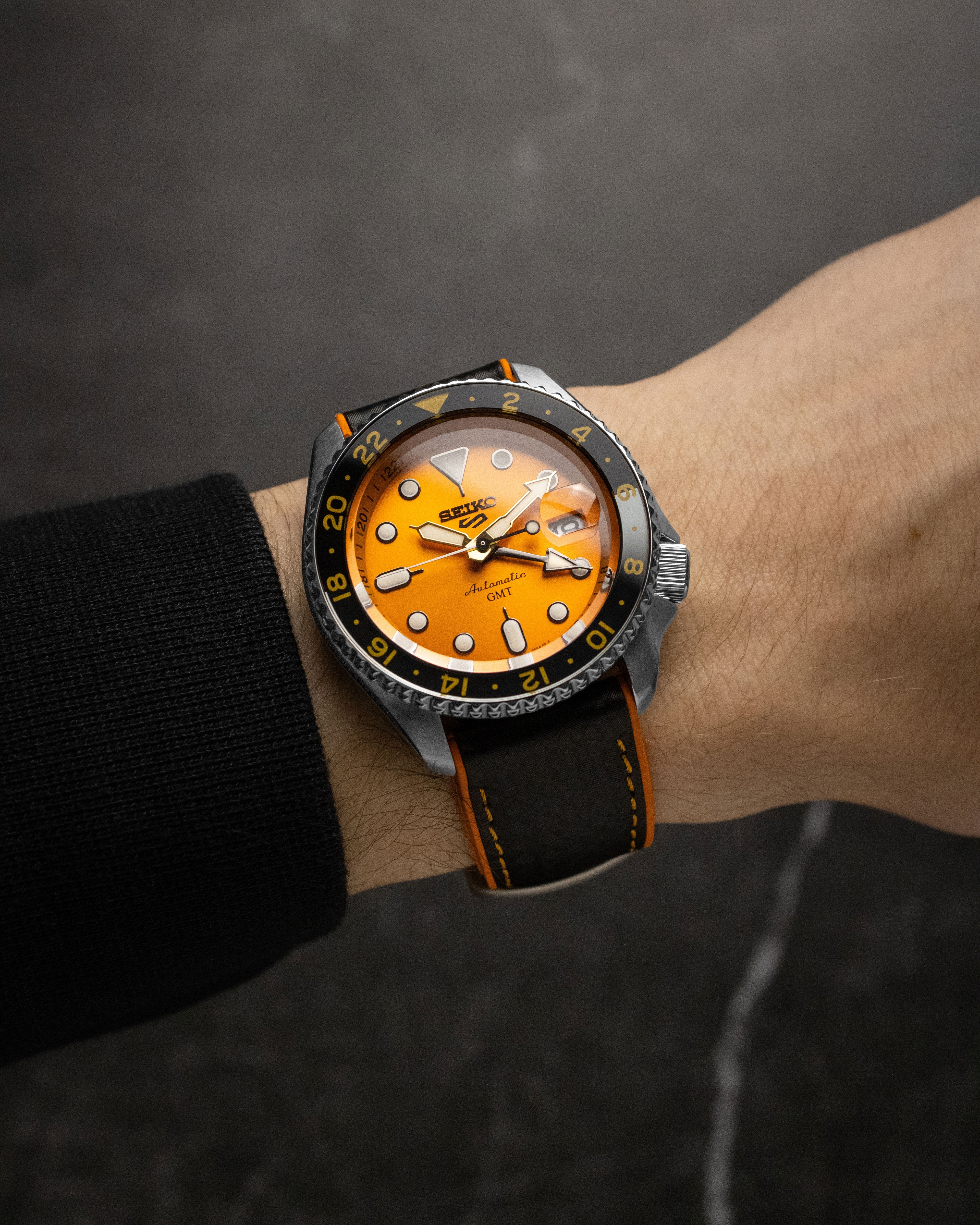 Ezra Leather Rubber Performance Hybrid Strap Orange