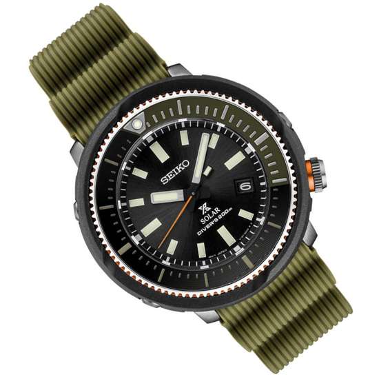 Seiko SNE547 SNE547P1 SNE547P Seiko Solar Green Silicone Strap Diving Watch