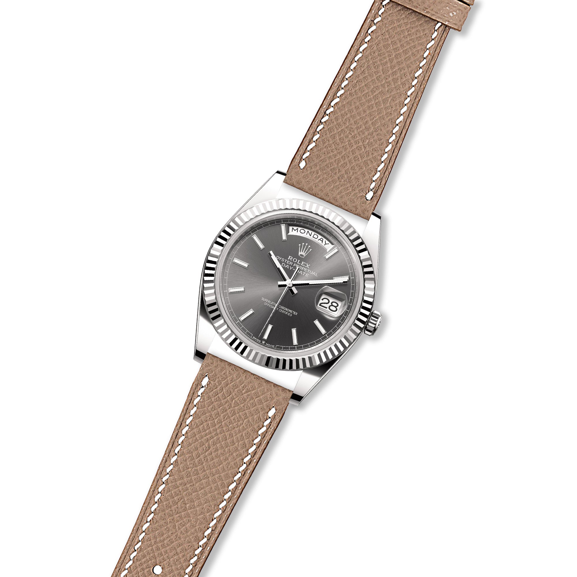 Disclaimer: This strap is not produced or approved by Rolex SA. It is a third-party accessory designed to fit the Rolex Day-Date 36mm (118238) and Day-Date 40mm (228238).