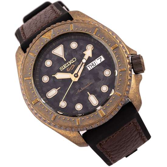 Seiko 5 Sports Vintage Style Leather Watch SRPE80K1 SRPE80 SRPE80K