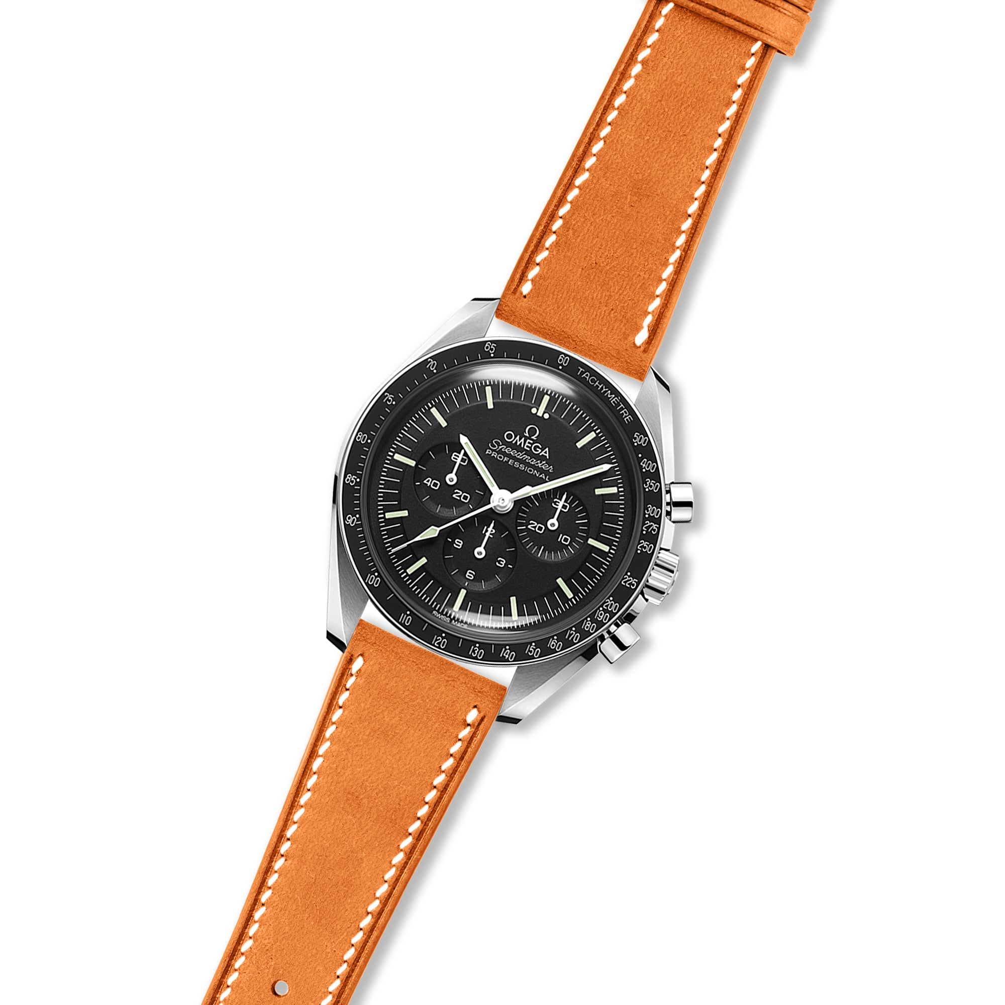 Elevate your Omega Speedmaster Moonwatch with the exquisite Pueblo Calfskin Leather Strap, meticulously handcrafted in Italy. Sourced from the prestigious Badalassi Carlo tannery, this exceptional strap embodies a harmonious blend of rugged sophistication and timeless appeal, perfectly complementing your iconic Speedmaster.