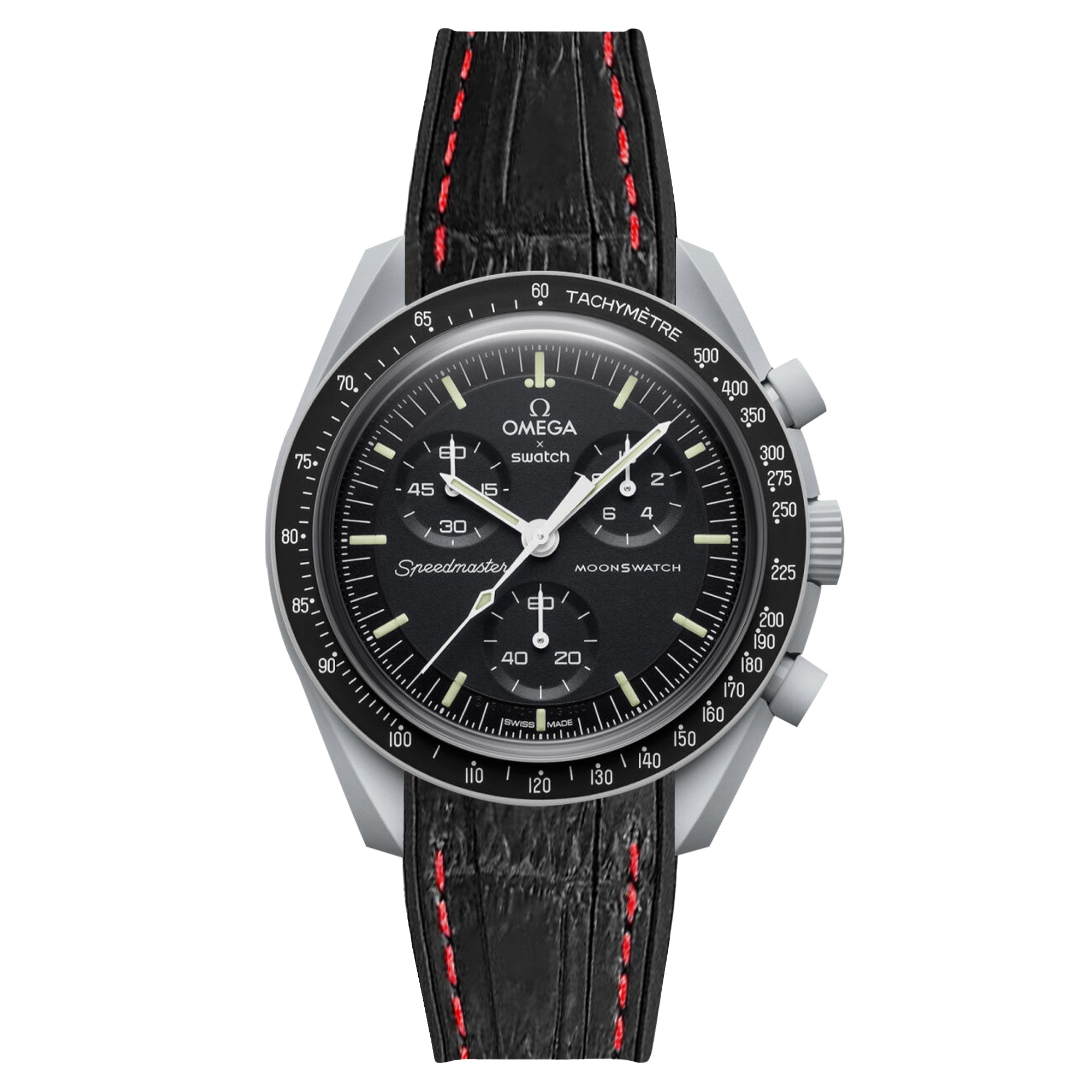 Enhance your Omega x Swatch Mission to the Moon Moonswatch with our luxurious Crocodile Embossed Silicone Strap. This premium strap seamlessly blends sophisticated style with exceptional comfort and durability, making it the perfect companion for your Bioceramic timepiece.