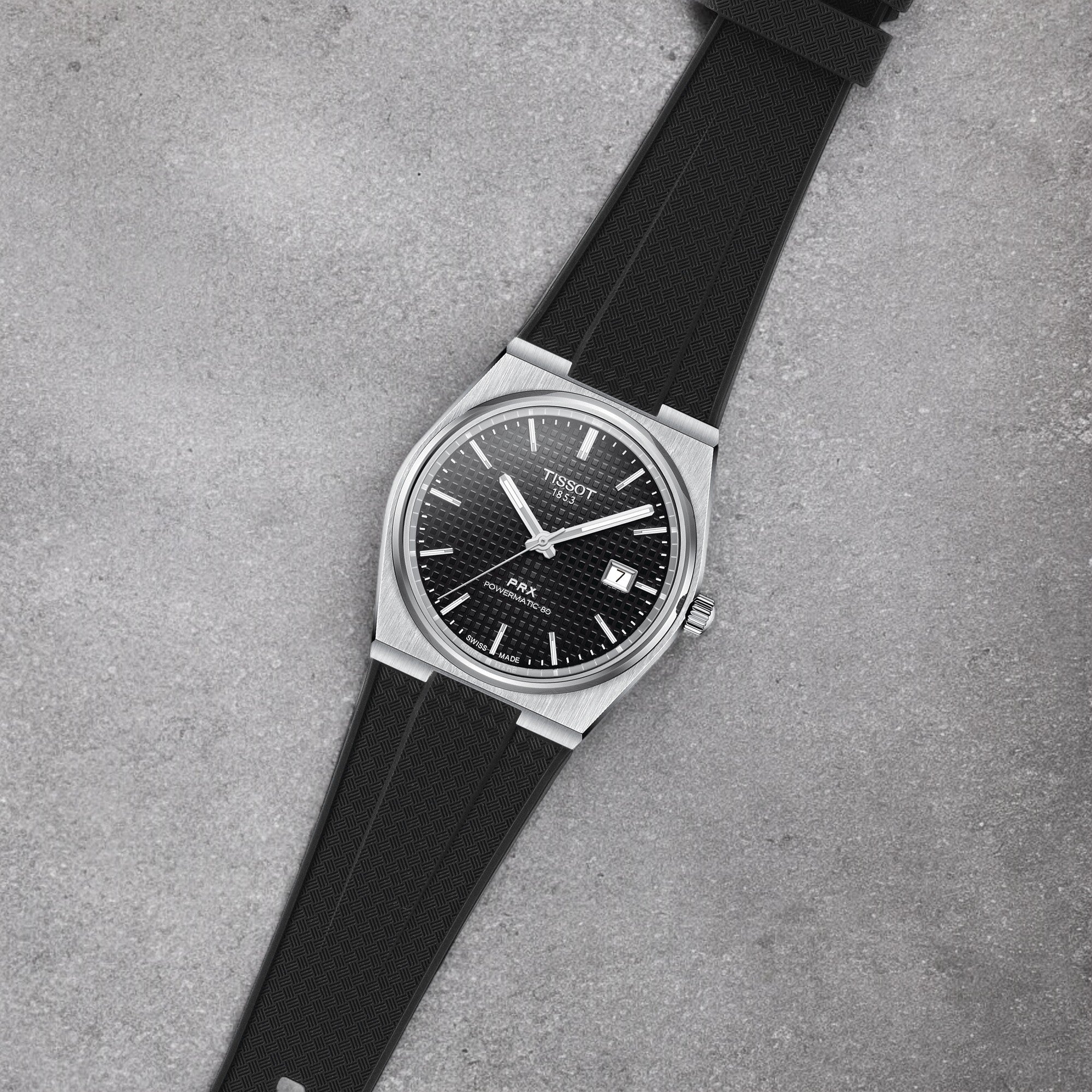 Transform your Tissot PRX 80 Powermatic with the Rubber Strap, a perfect fusion of style and comfort. Designed for seamless integration with your timepiece, this strap offers a secure fit and a unique aesthetic that complements the PRX's iconic design.