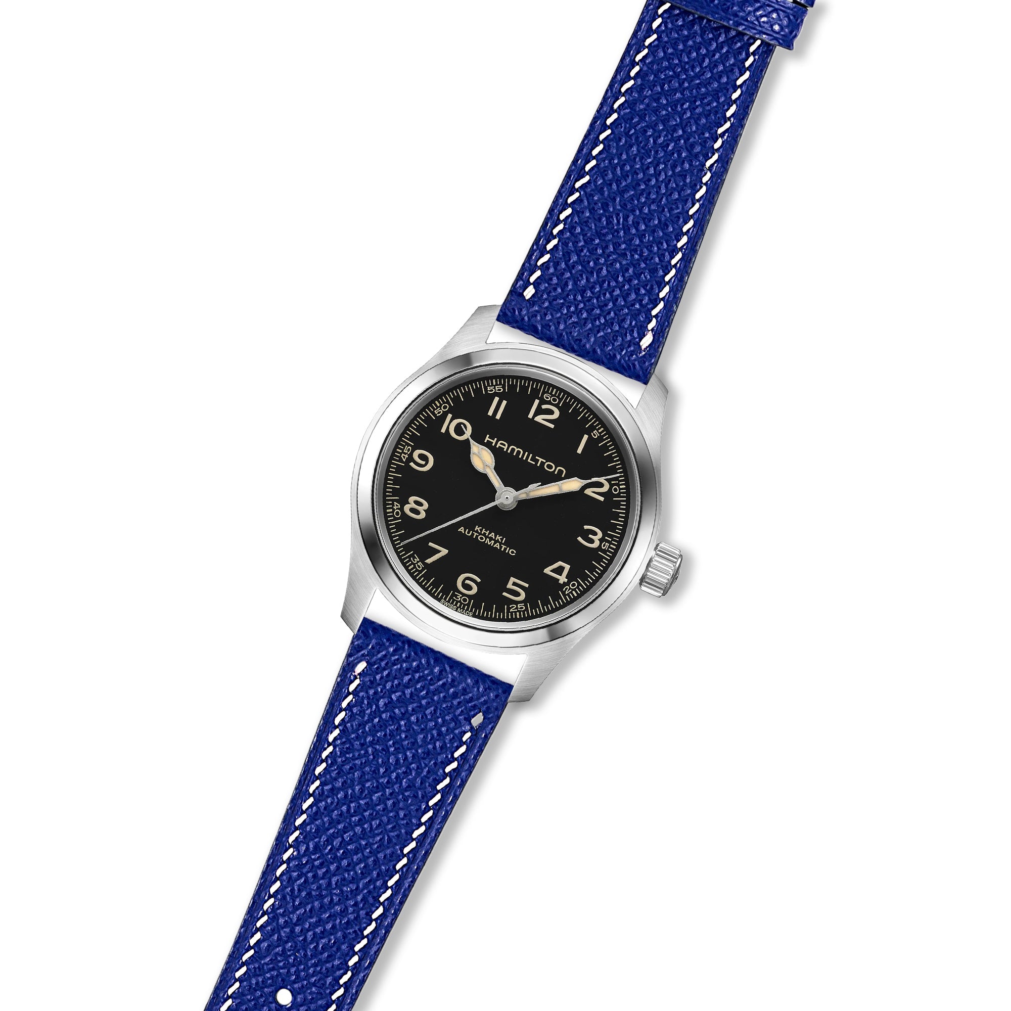 Enhance your Hamilton Khaki Field with the understated elegance of our Epsom Calfskin Leather Strap. Sourced from the renowned Tanneries Du Puy in France, this strap offers a refined aesthetic, exceptional durability, and a comfortable fit that's perfect for everyday wear.