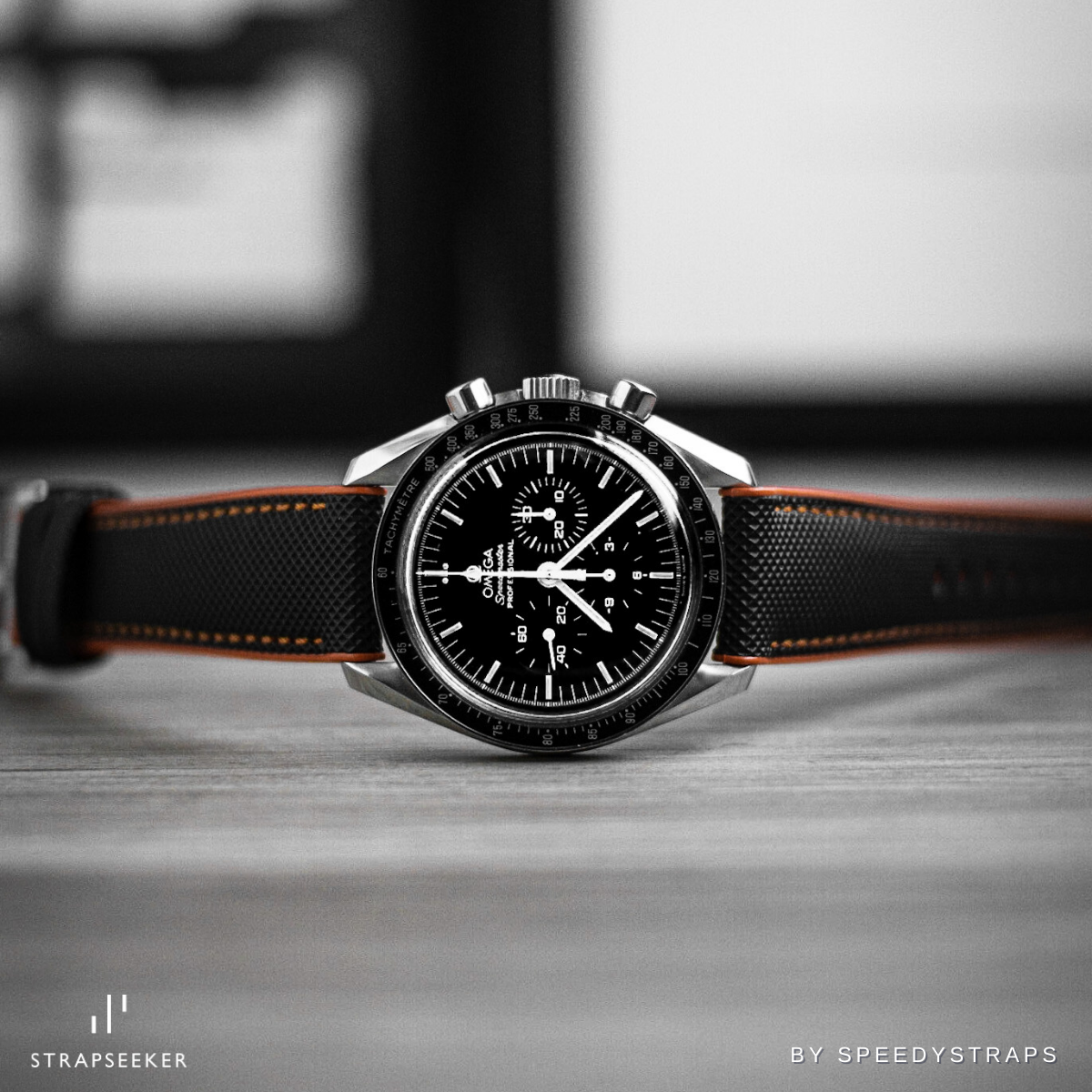 Watts Premium Italian Calf Leather Rubber Hybrid Performance Watch Band for Rolex Explorer II - Black (8013)