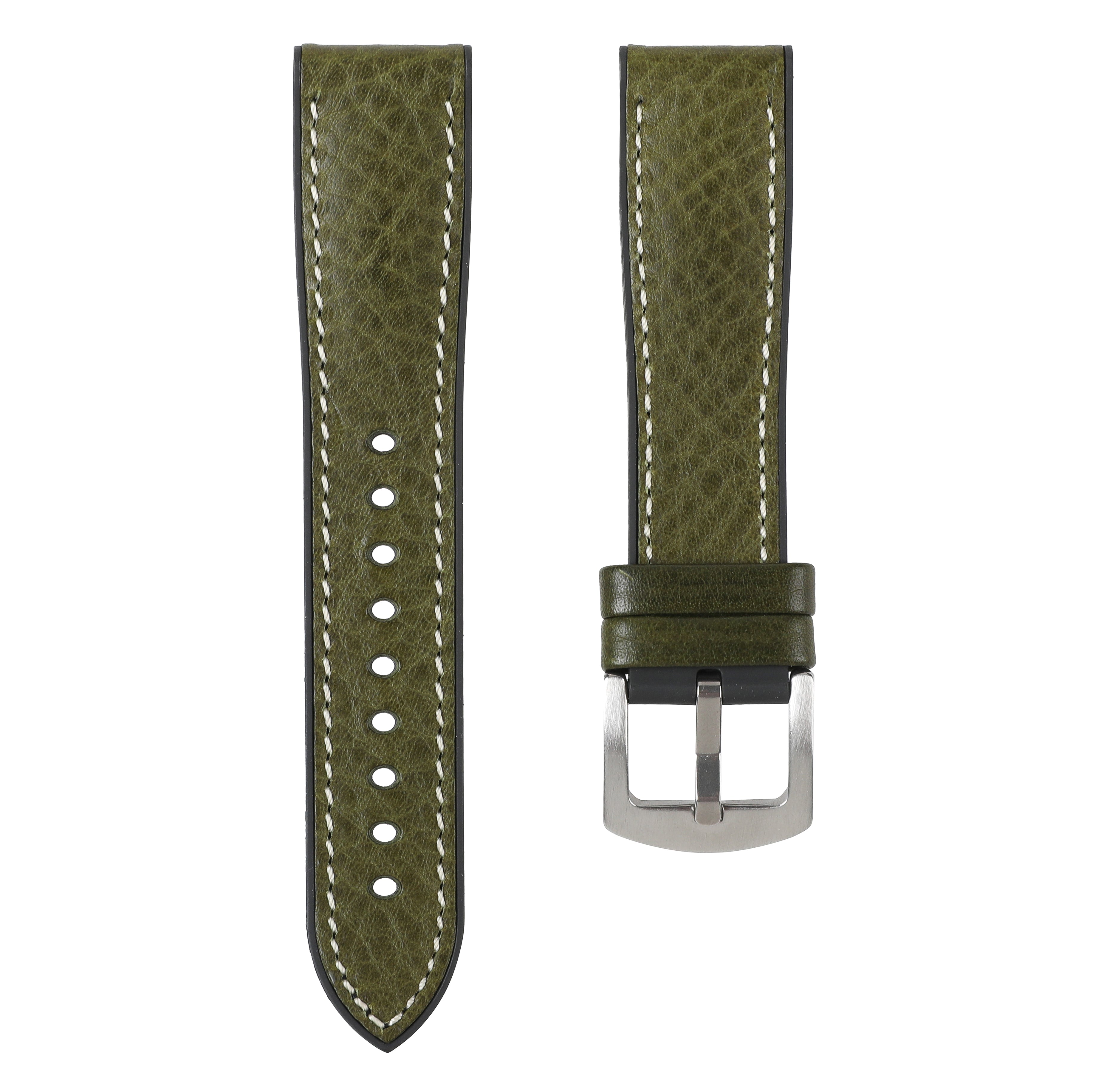 Watts Premium Italian Calf Leather Rubber Hybrid Performance Watch Band for Omega Speedmaster Moonwatch - Army Green (8013)