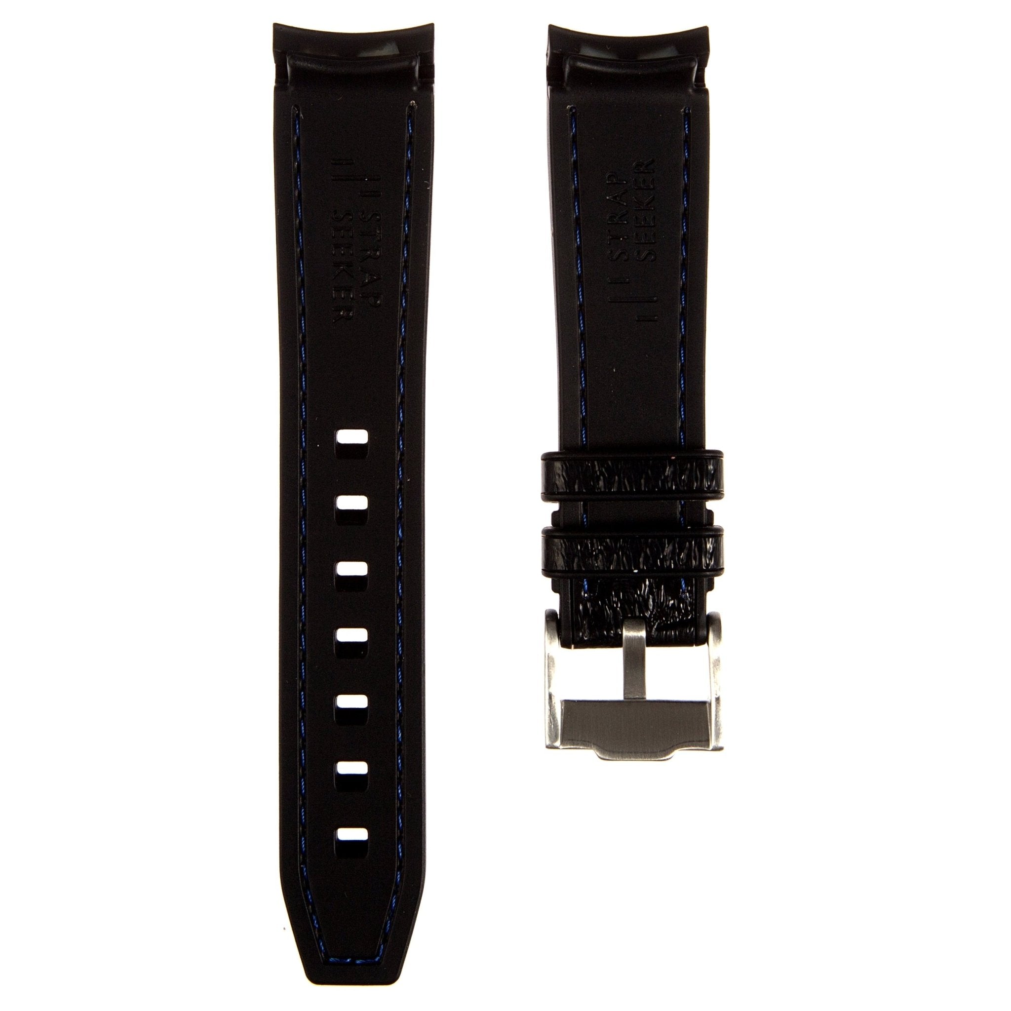 Embossed Alligator Curved End Premium Rubber Watch Strap for Omega Speedmaster Moonwatch - Black with Red Stitch (2406)