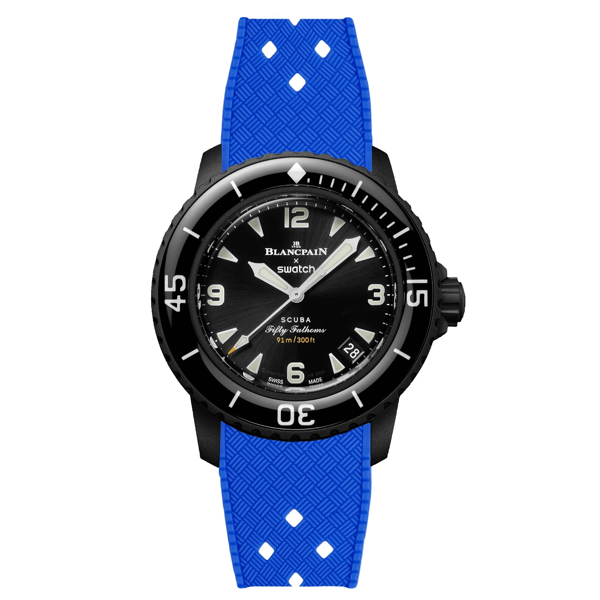 Enhance your Blancpain x Swatch Fifty Fathoms Arctic Ocean with our Vintage Perforared Rubber Strap. This strap seamlessly blends the timeless style of 1960s dive watches with modern comfort and functionality.