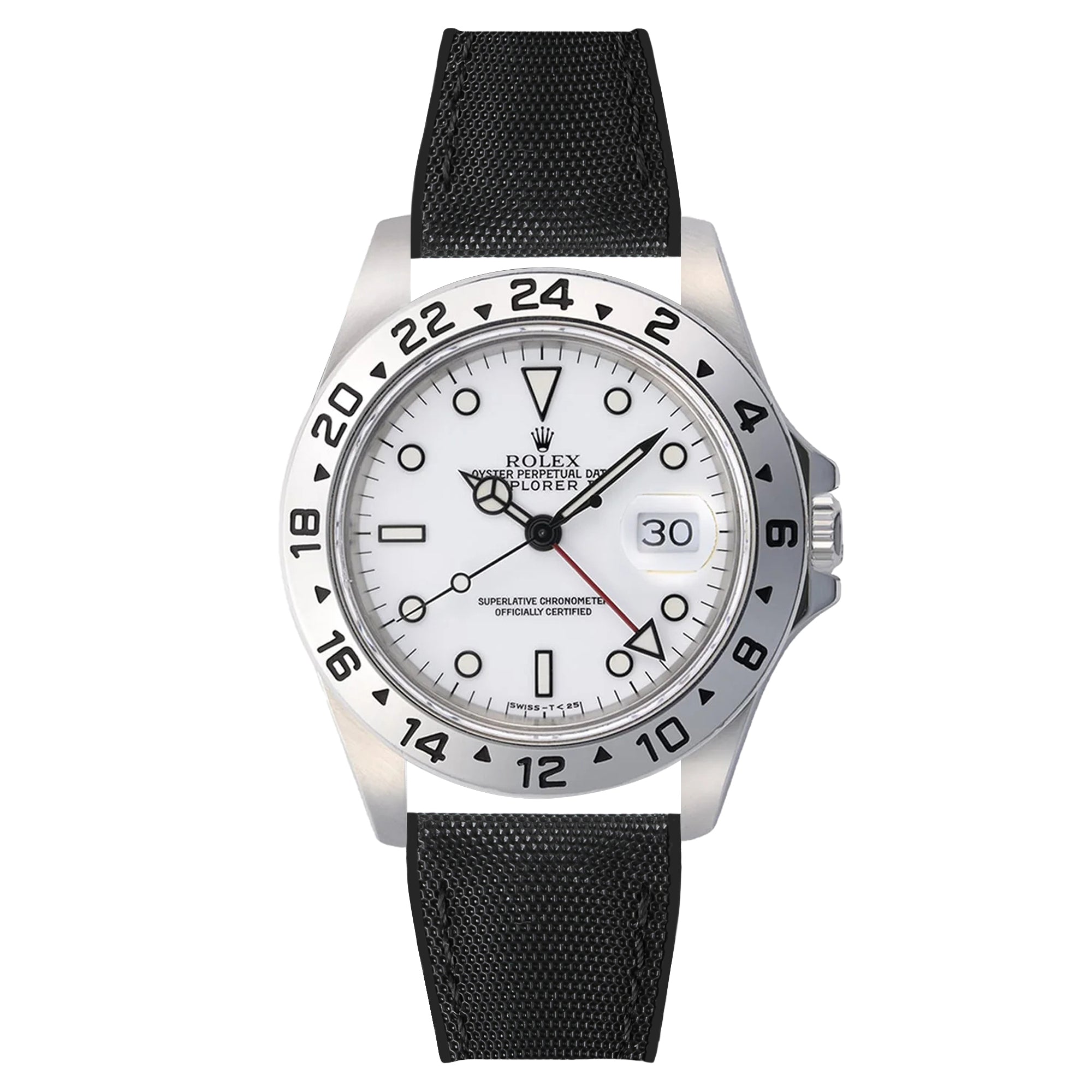 Elevate your Rolex Day-Date with the Luca Canvas Nylon Performance Strap, a perfect fusion of rugged durability and refined style. Designed for the modern adventurer, this strap seamlessly blends the timeless appeal of canvas nylon with the resilient performance of an FKM rubber core, creating a versatile and comfortable accessory for your cherished timepiece.