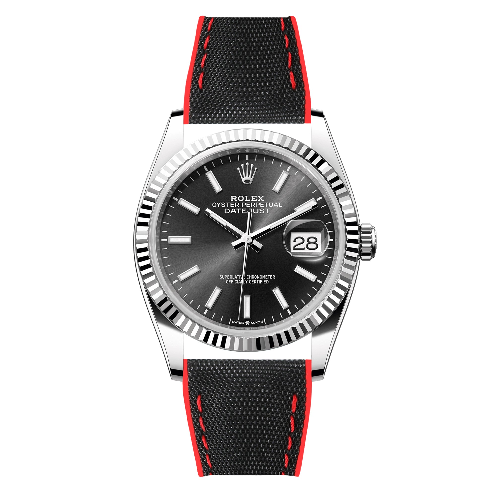Elevate your Rolex Day-Date with the Luca Canvas Nylon Performance Strap, a perfect fusion of rugged durability and refined style. Designed for the modern adventurer, this strap seamlessly blends the timeless appeal of canvas nylon with the resilient performance of an FKM rubber core, creating a versatile and comfortable accessory for your cherished timepiece.