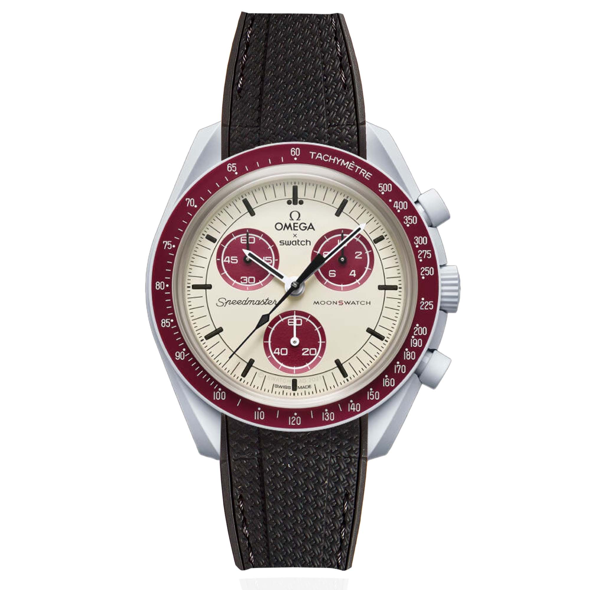 Textured Curved End Rubber Watch Strap for Omega x Swatch Moonswatch - Mission to Mercury - Brown (2405)