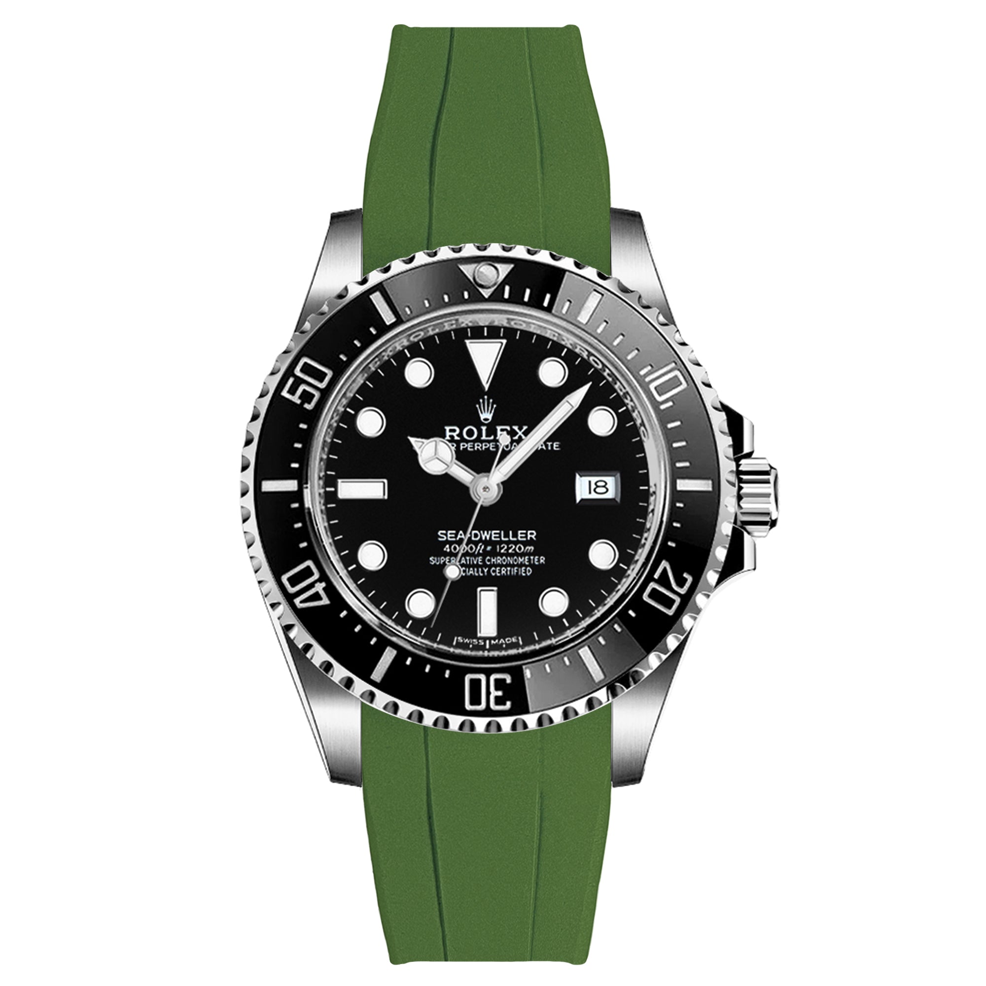 Integrated Curved End FKM Rubber Strap for Tudor Ranger - Army Green (2440)