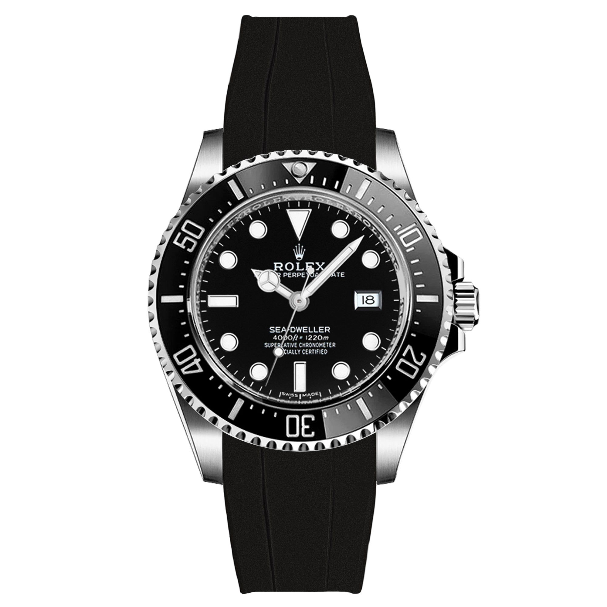 Integrated Curved End FKM Rubber Strap for Tudor Ranger - Black (2440)
