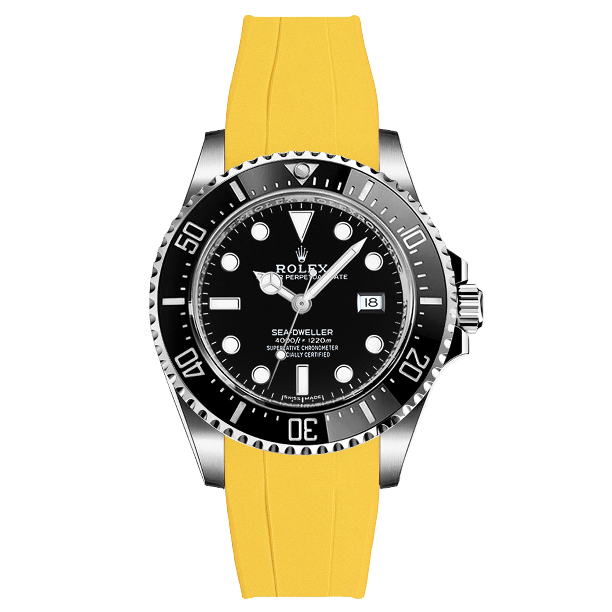 Grid Texture FKM Rubber Watch Strap - Quick-Release - Pale Yellow (2412)